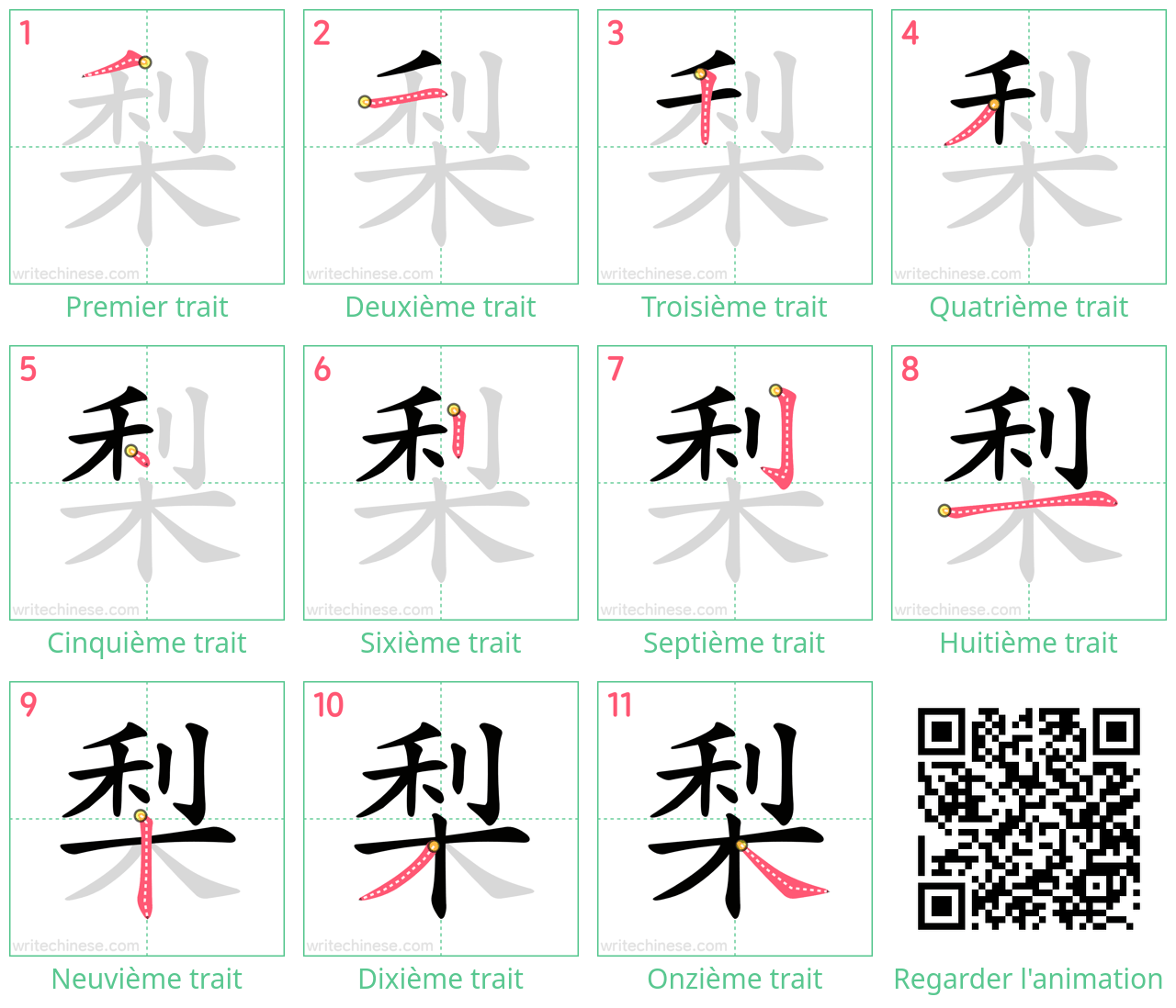 Apprenez à écrire le caractère chinois "梨" en regardant l'animation de l'ordre des traits de "梨".