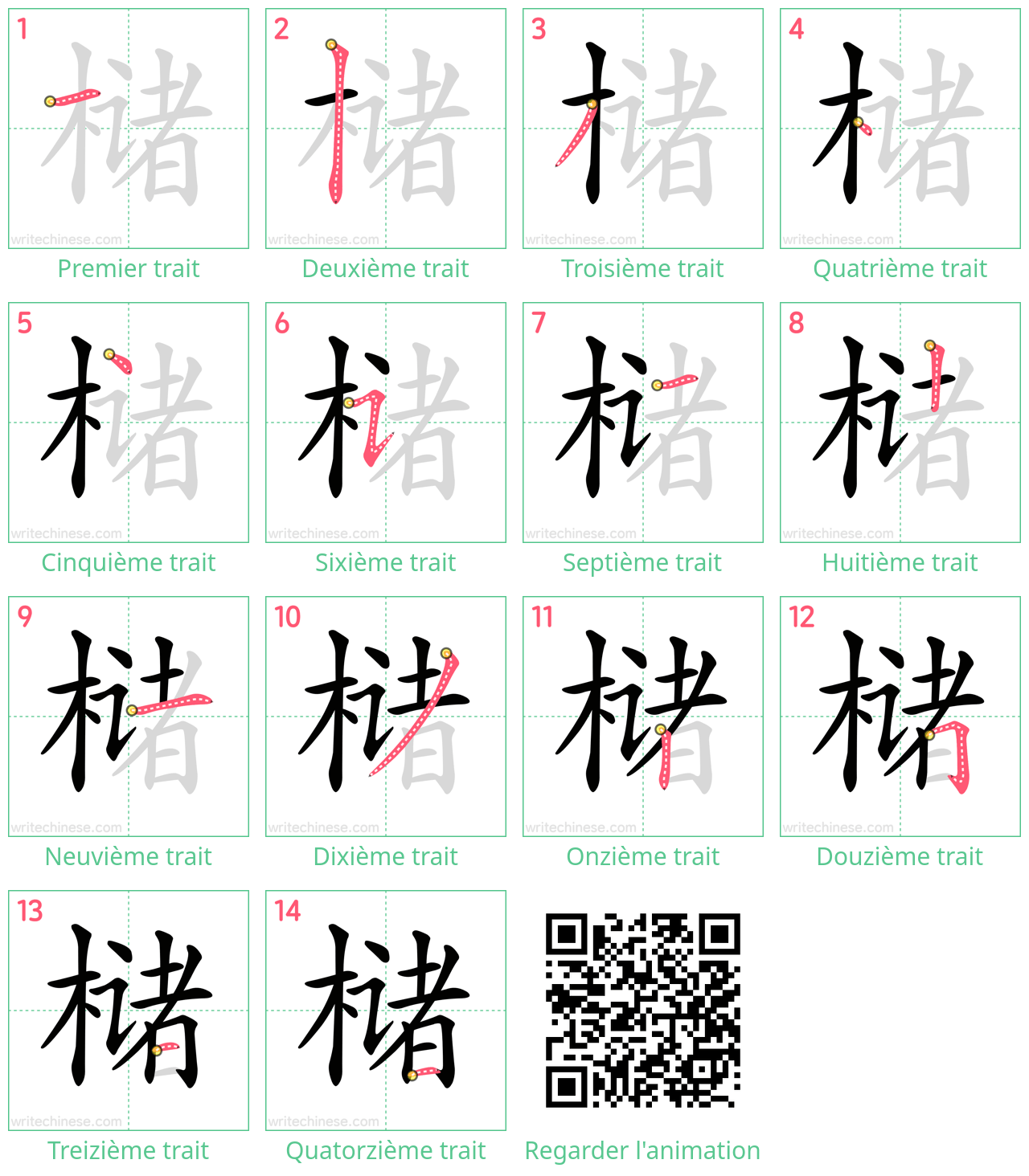 Maîtrisez le caractère chinois '槠' trait par trait grâce à des instructions visuelles étape par étape.