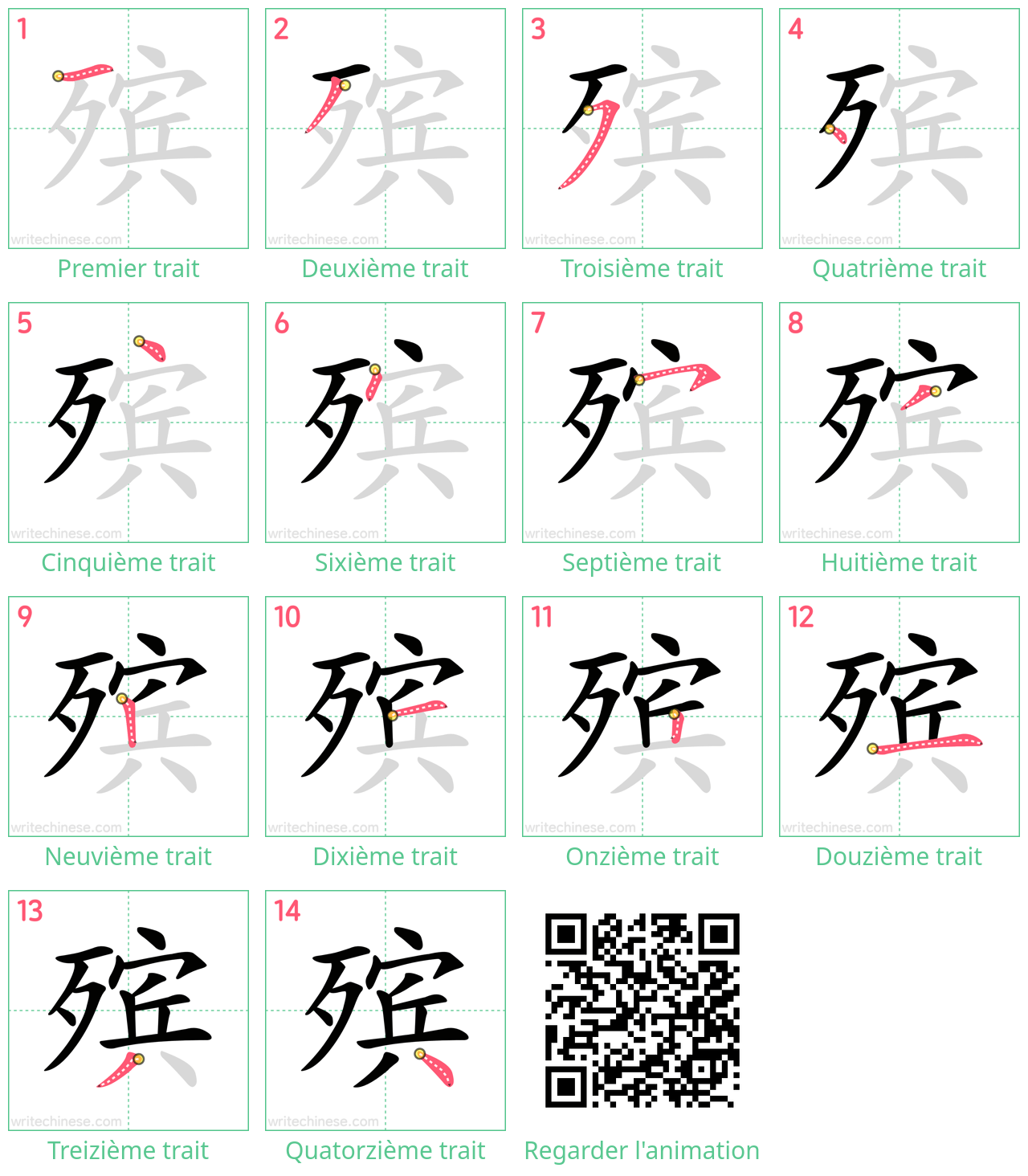 Apprenez à écrire le caractère chinois "殡" en regardant l'animation de l'ordre des traits