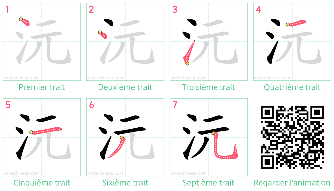 Apprenez à écrire le caractère chinois "沅" en regardant l'animation de l'ordre des traits de "沅".