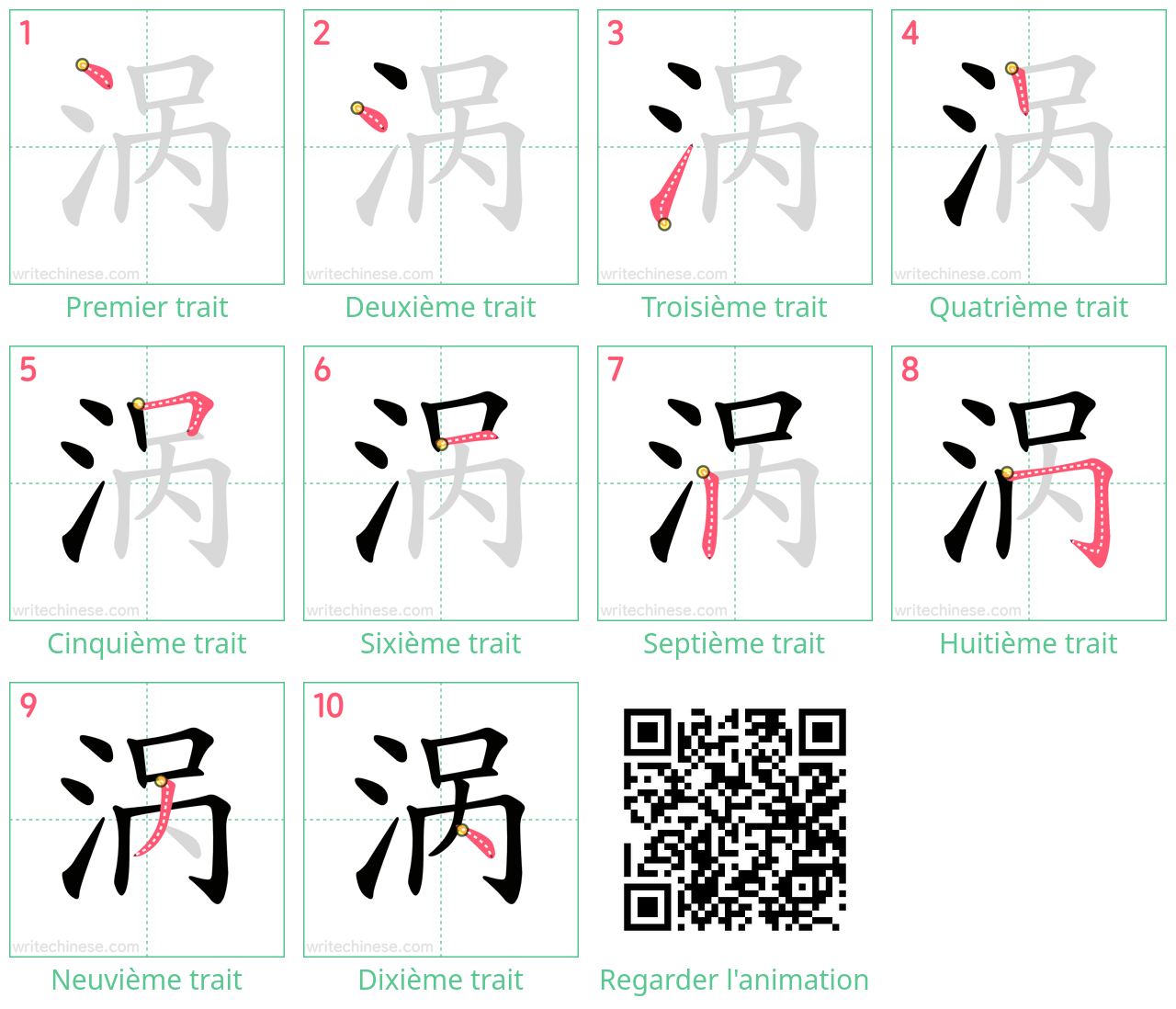 Apprenez à écrire le caractère chinois "涡" en regardant l'animation de l'ordre des traits