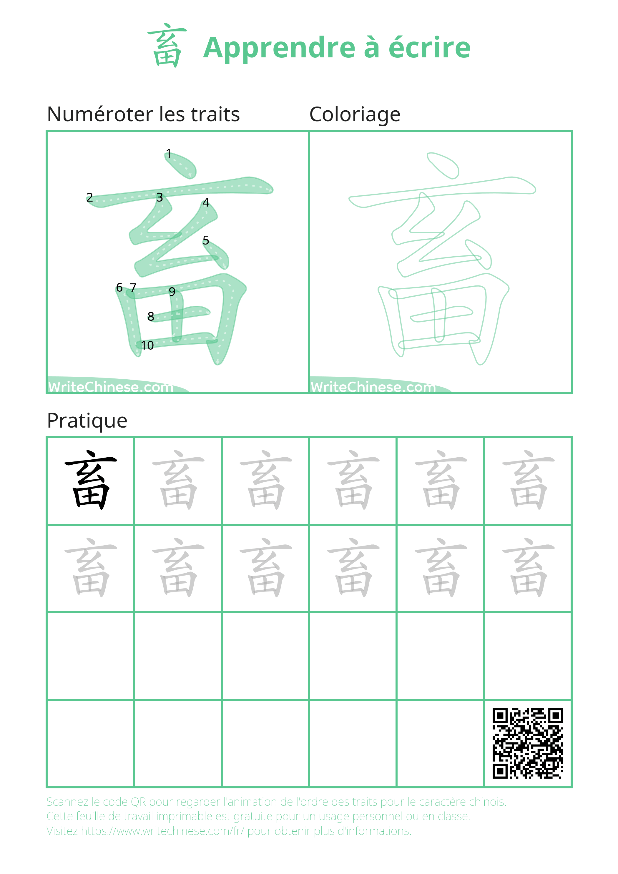 Feuilles d'exercices gratuites imprimables pour la pratique de l'écriture de 畜
