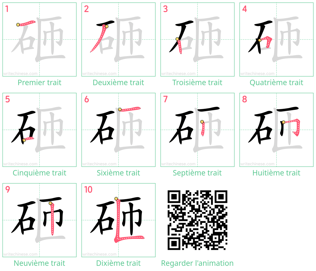 Apprenez à écrire le caractère chinois "砸" en regardant l'animation de l'ordre des traits