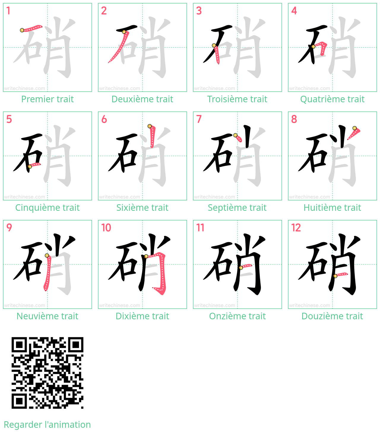Apprenez à écrire le caractère chinois "硝" en regardant l'animation de l'ordre des traits
