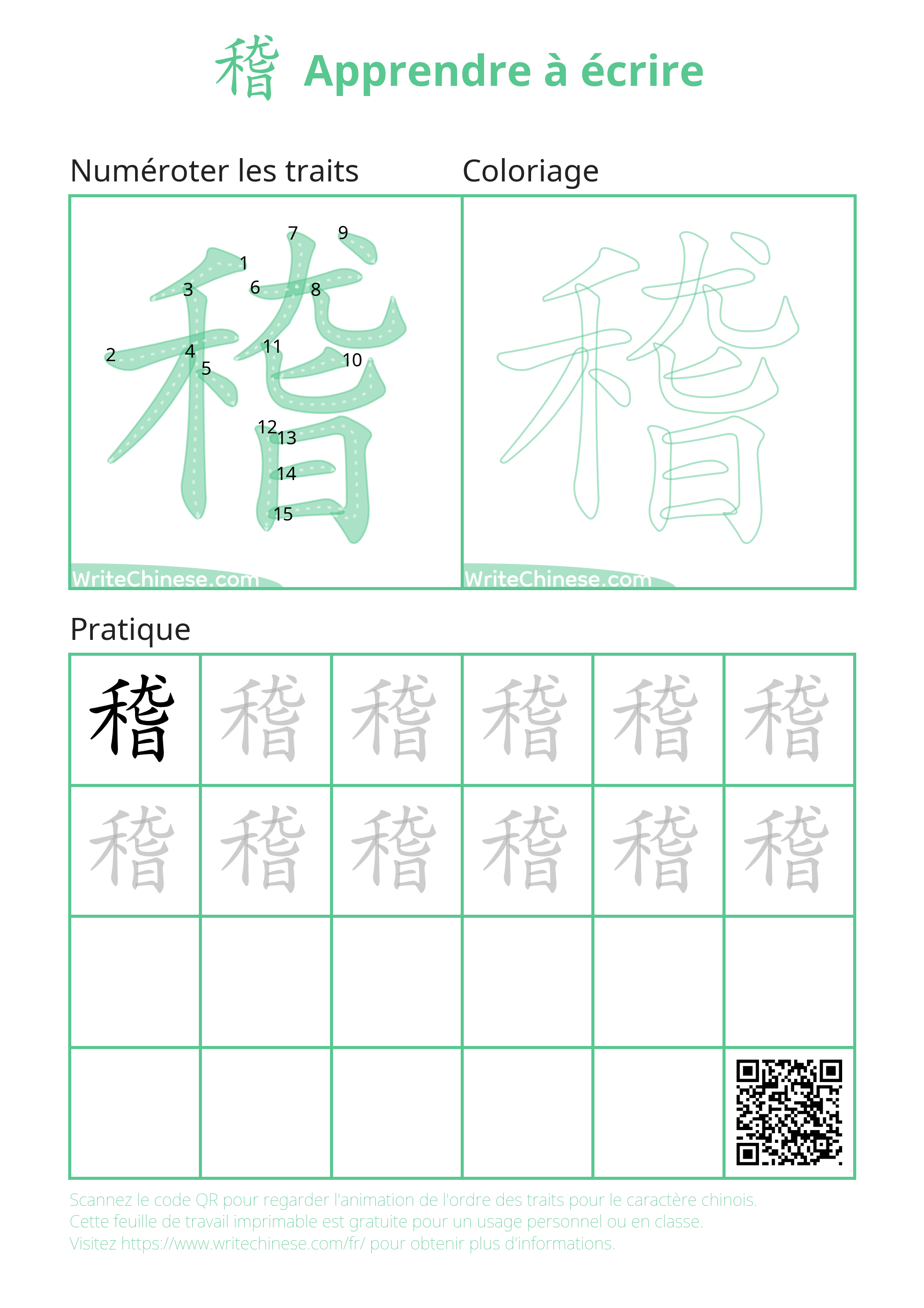 Apprenez la bonne manière d'écrire le caractère chinois '稽' grâce à un tutoriel vidéo avec un professeur de calligraphie. Suivez le guide étape par étape du maître de la calligraphie pour écrire le caractère chinois '稽'. Vous pouvez télécharger les fiches d'écriture manuscrite imprimables ci-dessous et pratiquer en écrivant avec un stylo et du papier.
