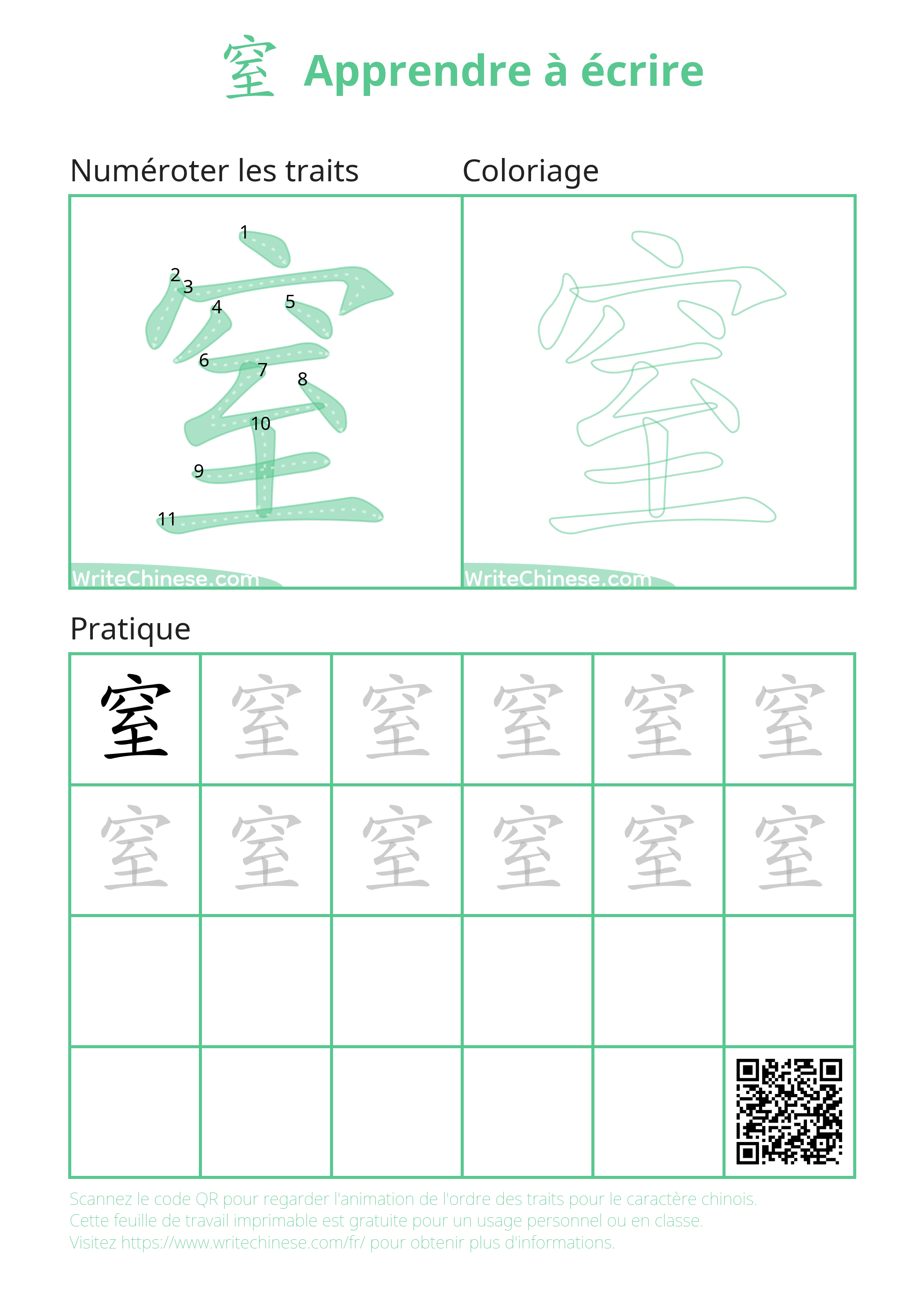 Apprenez à écrire le caractère chinois "窒" en regardant l'animation de l'ordre des traits de "窒".