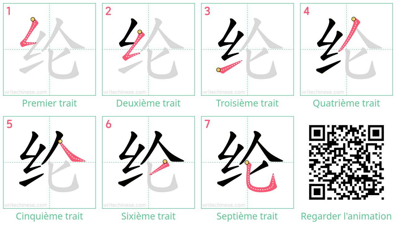 Apprenez à écrire le caractère chinois "纶" en regardant l'animation de l'ordre des traits