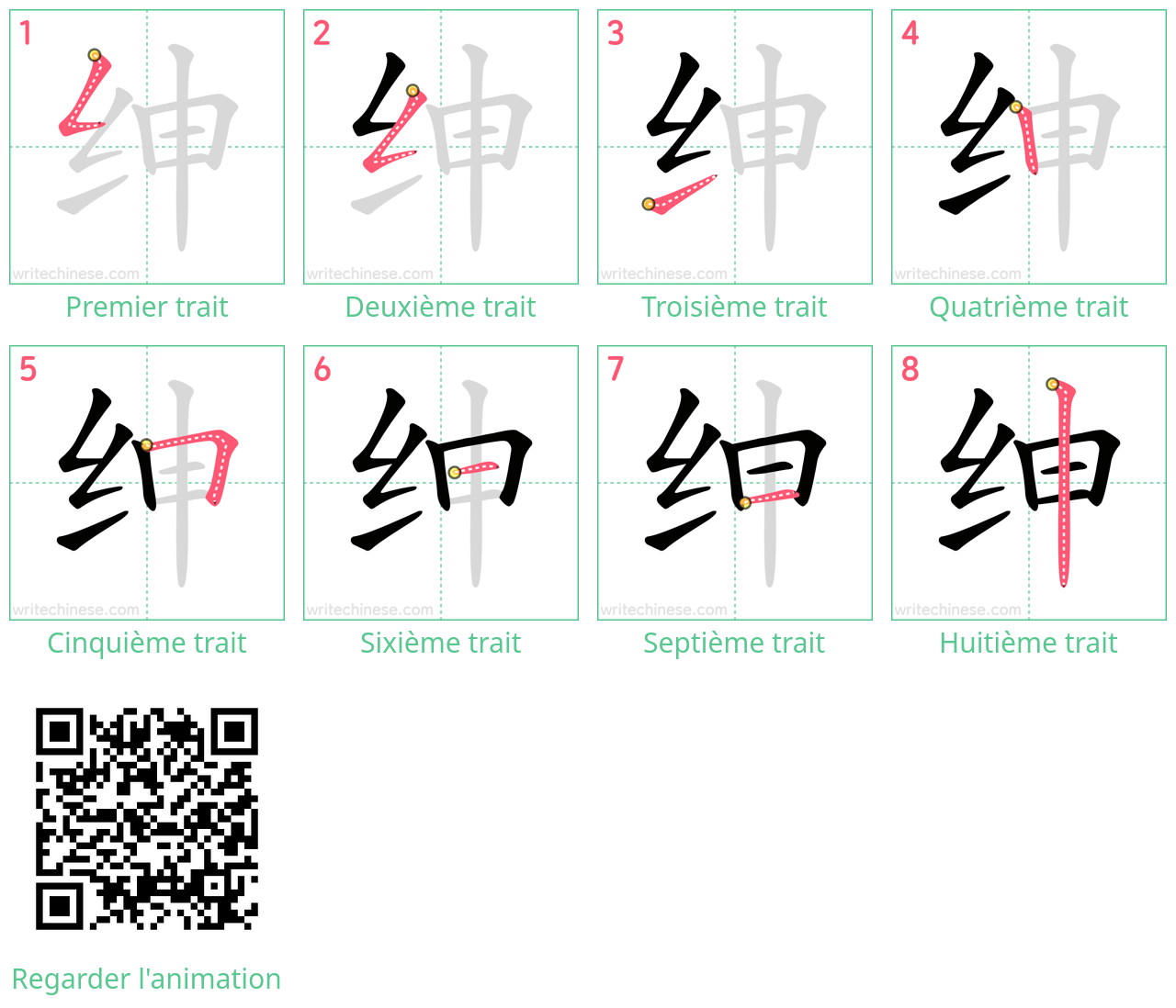 Apprenez à écrire le caractère chinois "绅" en regardant l'animation de l'ordre des traits