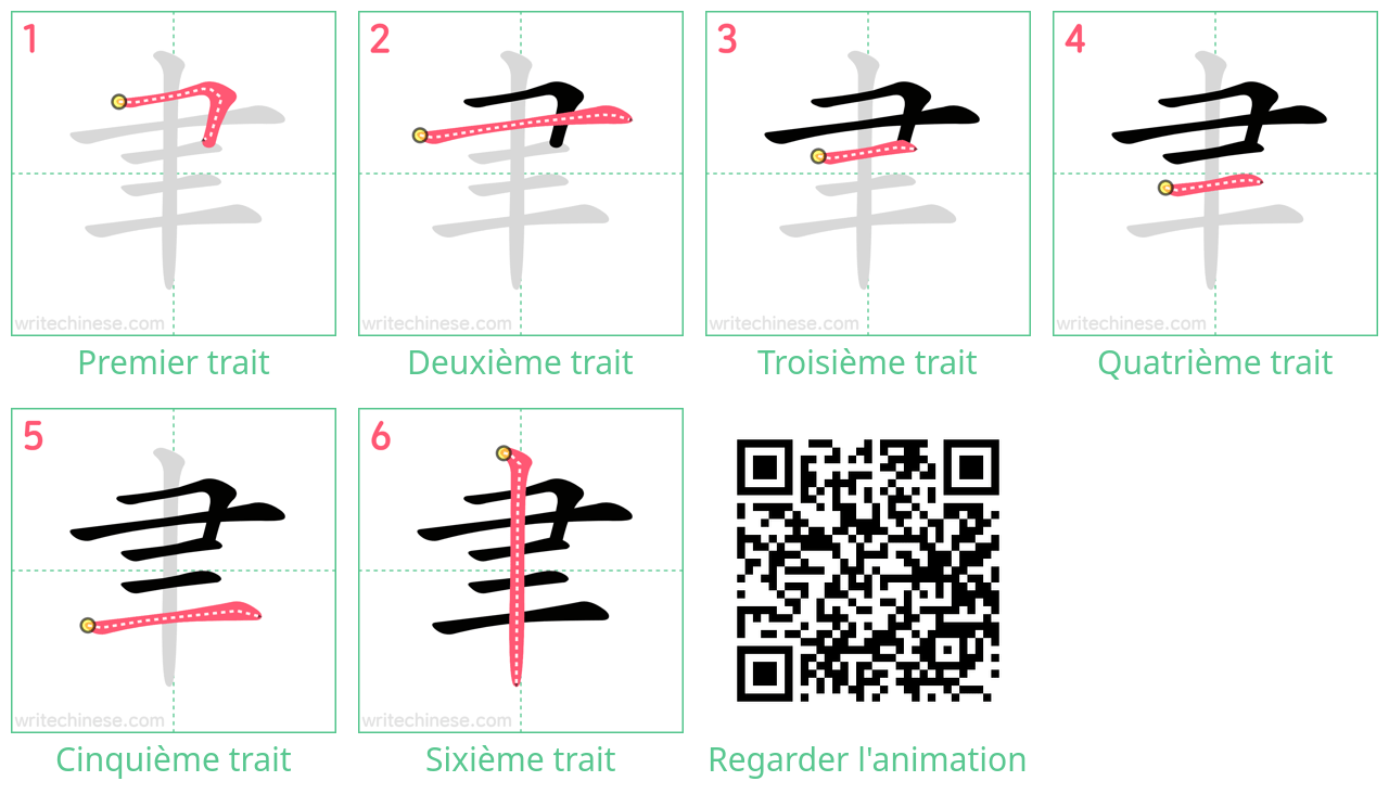 Apprenez à écrire le caractère chinois "聿" en regardant l'animation de l'ordre des traits de "聿".