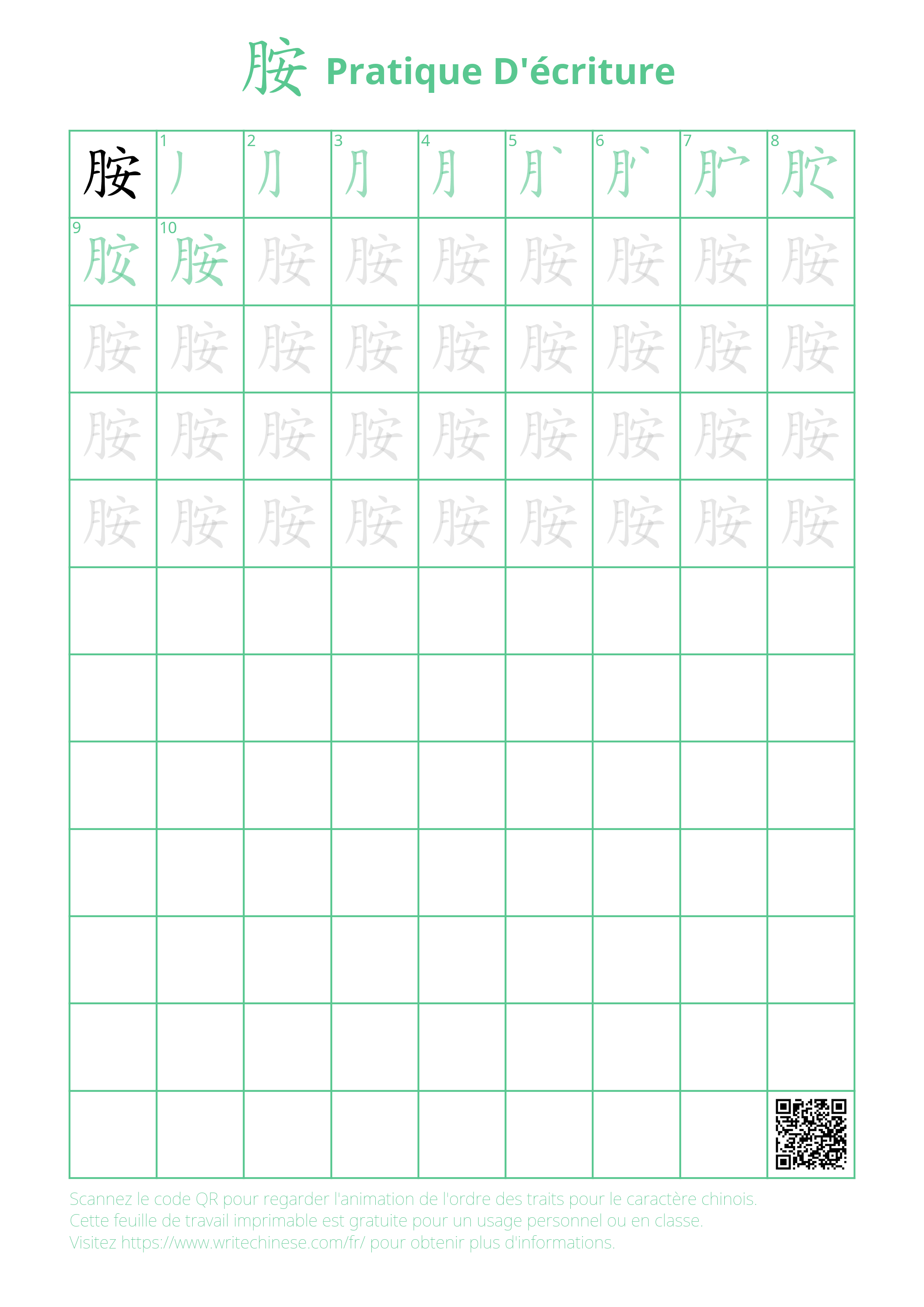 calligraphie pour écrire le caractère chinois '胺'. Vous pouvez télécharger les fiches