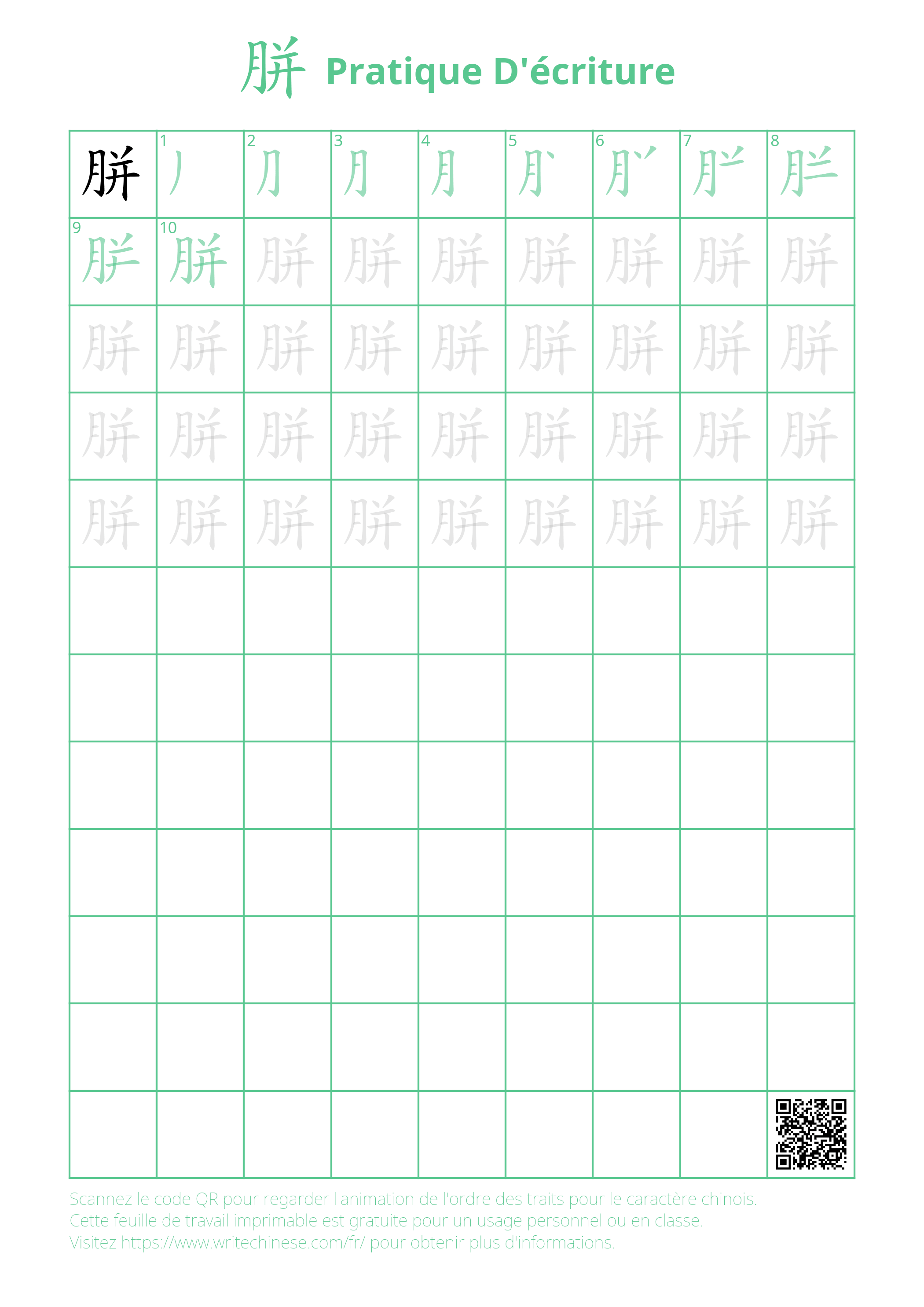 Apprenez la bonne manière d'écrire le caractère chinois '胼' grâce à un tutoriel vidéo avec un professeur de calligraphie. Suivez le guide étape par étape du maître de la calligraphie pour écrire le caractère chinois '胼'. Vous pouvez télécharger les fiches d'écriture manuscrite imprimables ci-dessous et pratiquer en écrivant avec un stylo et du papier.