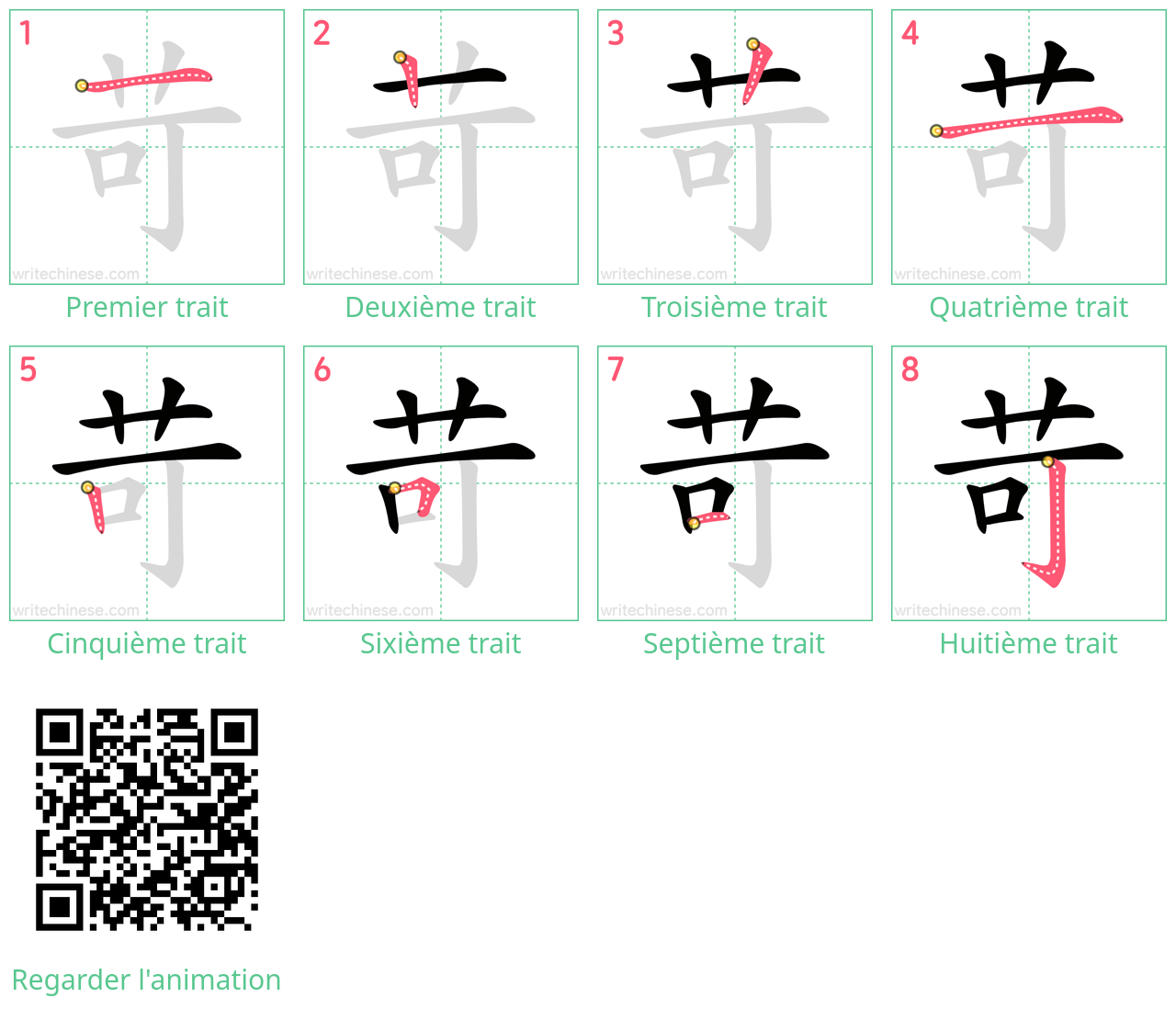Apprenez à écrire le caractère chinois "苛" en regardant l'animation de l'ordre des traits