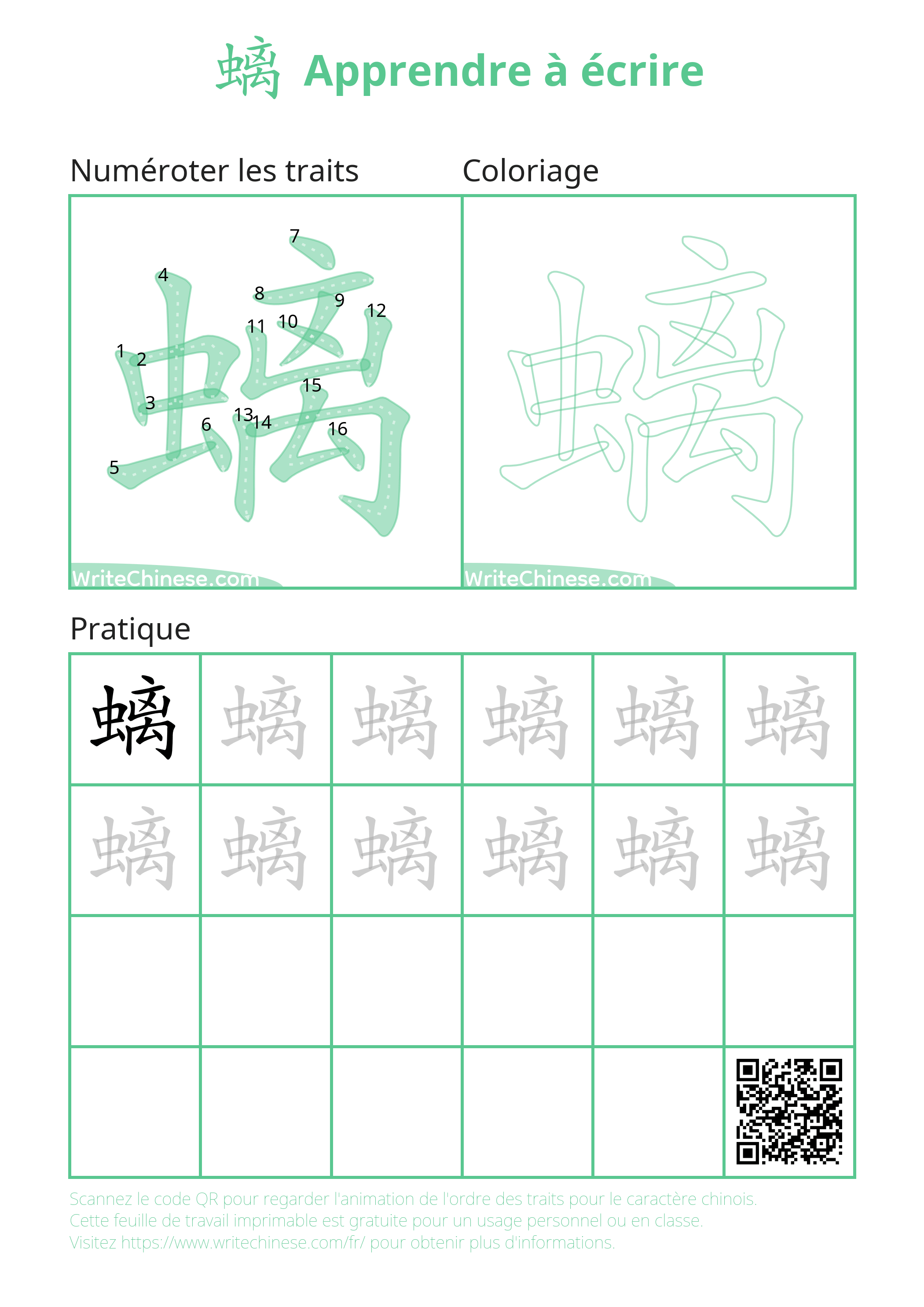 Feuilles d'exercices gratuites imprimables pour la pratique de l'écriture de 螭