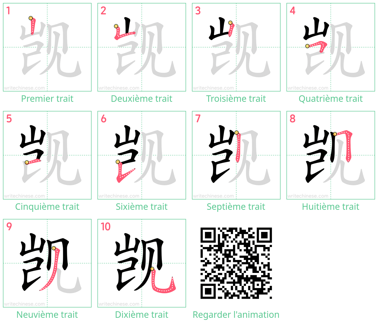 calligraphie pour écrire le caractère chinois '觊'. Vous pouvez télécharger les fiches