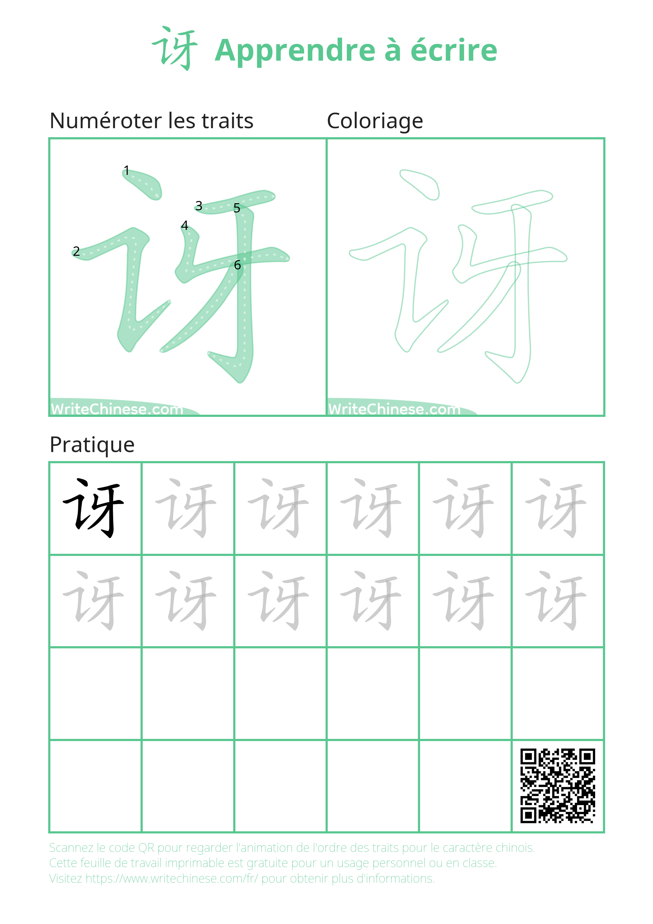 Feuilles d'exercices gratuites imprimables pour la pratique de l'écriture de 讶