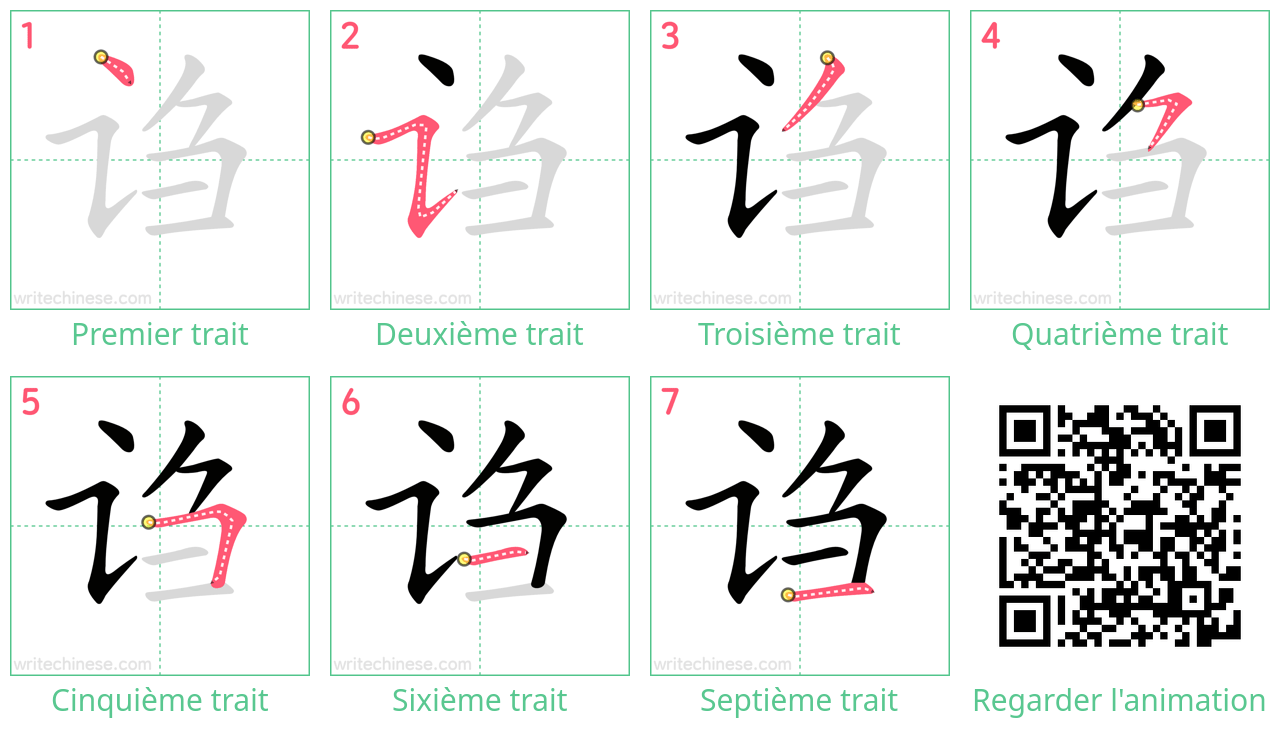 Apprenez à écrire le caractère chinois "诌" en regardant l'animation de l'ordre des traits