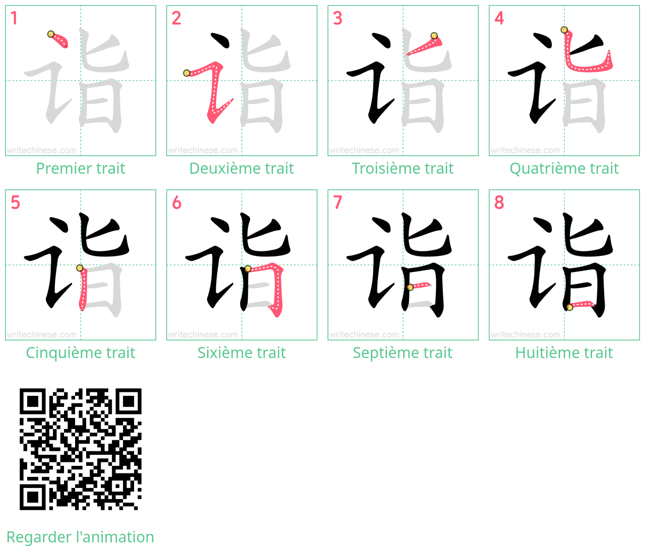 Apprenez à écrire le caractère chinois "诣" en regardant l'animation de l'ordre des traits de "诣".