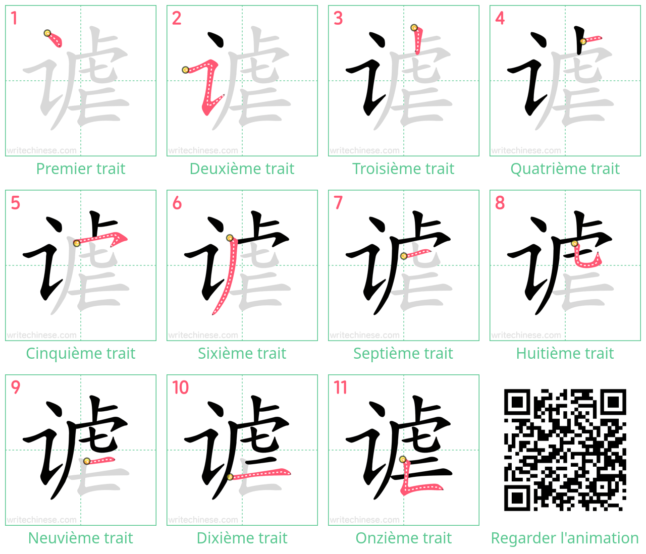 Diagrammes d'ordre des traits étape par étape pour le caractère 谑