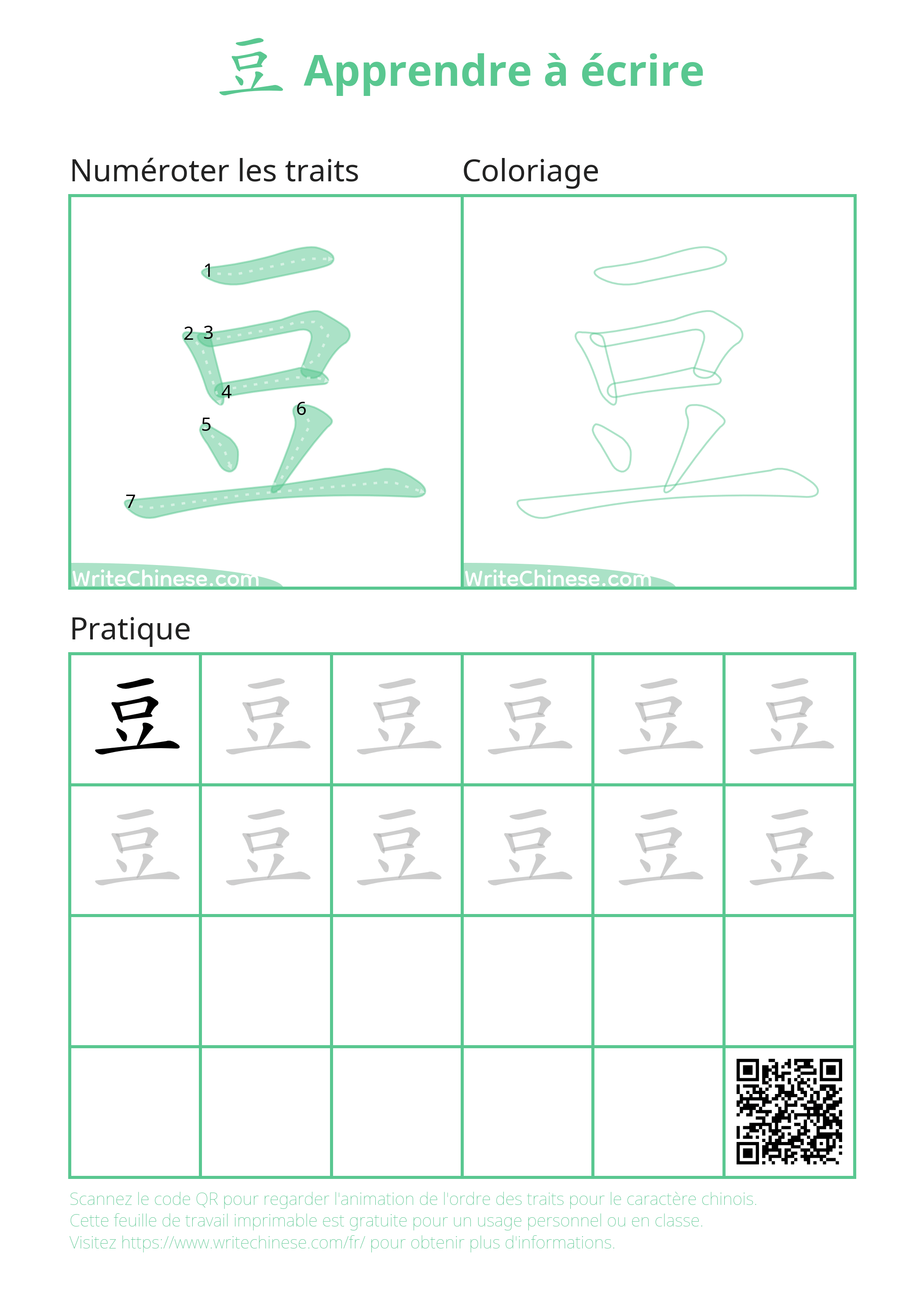 Feuilles d'exercices gratuites imprimables pour la pratique de l'écriture de 豆