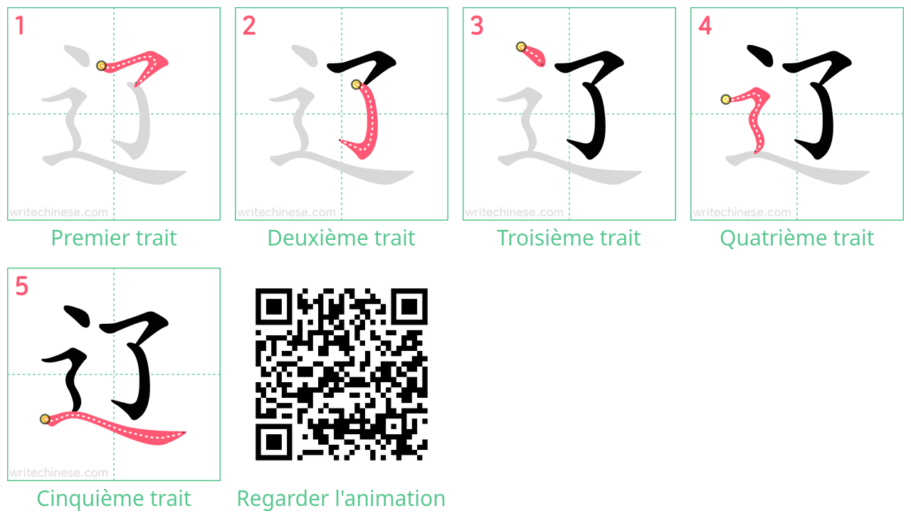 Apprenez à écrire le caractère chinois "辽" en regardant l'animation de l'ordre des traits