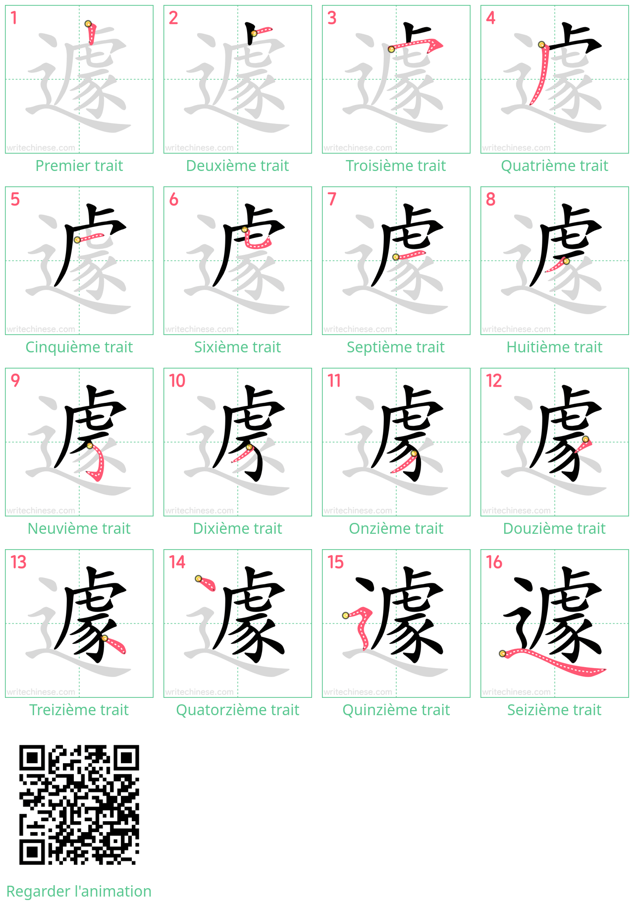 Apprenez à écrire le caractère chinois "遽" en regardant l'animation de l'ordre des traits