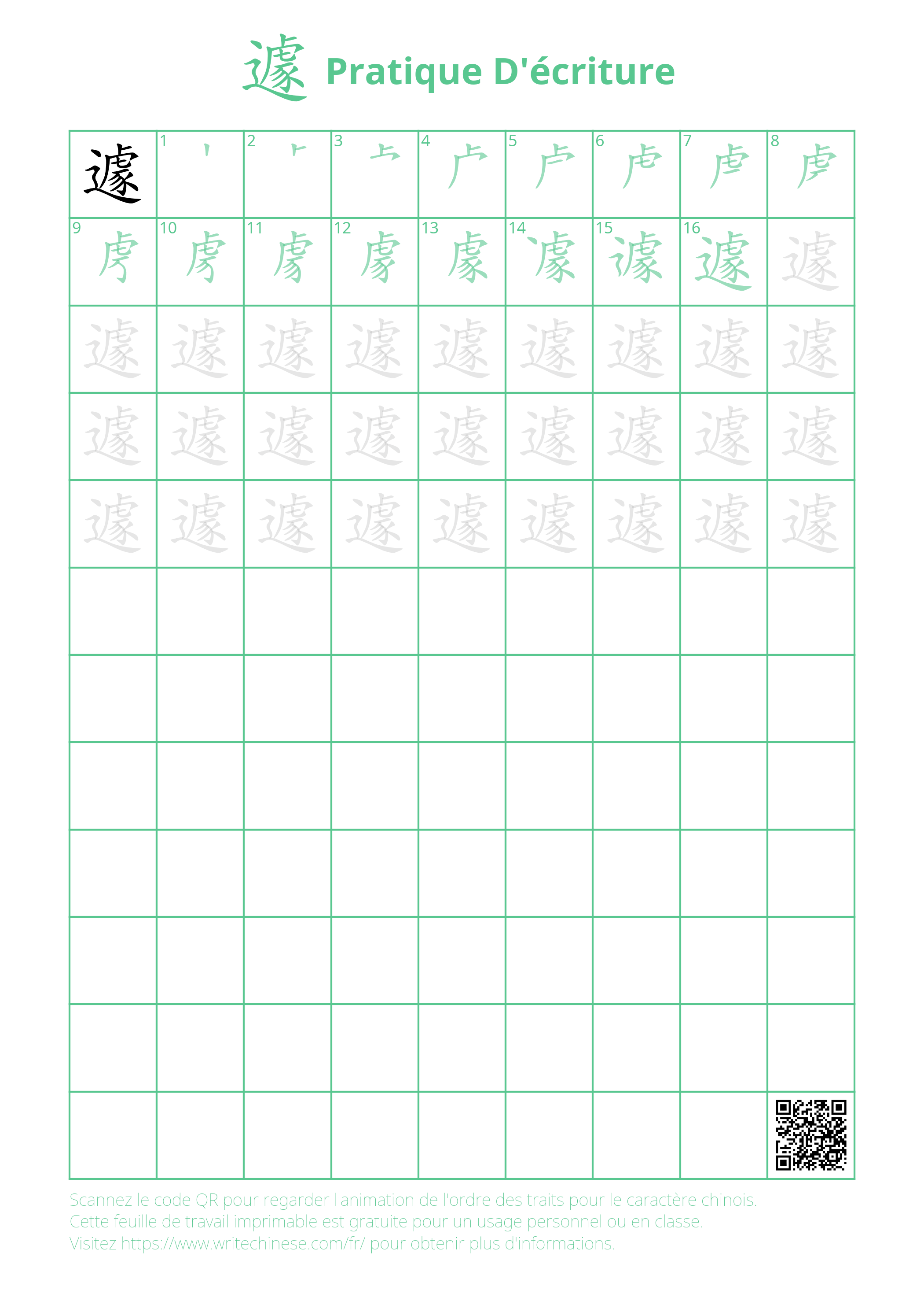 Feuilles d'exercices gratuites imprimables pour la pratique de l'écriture de 遽