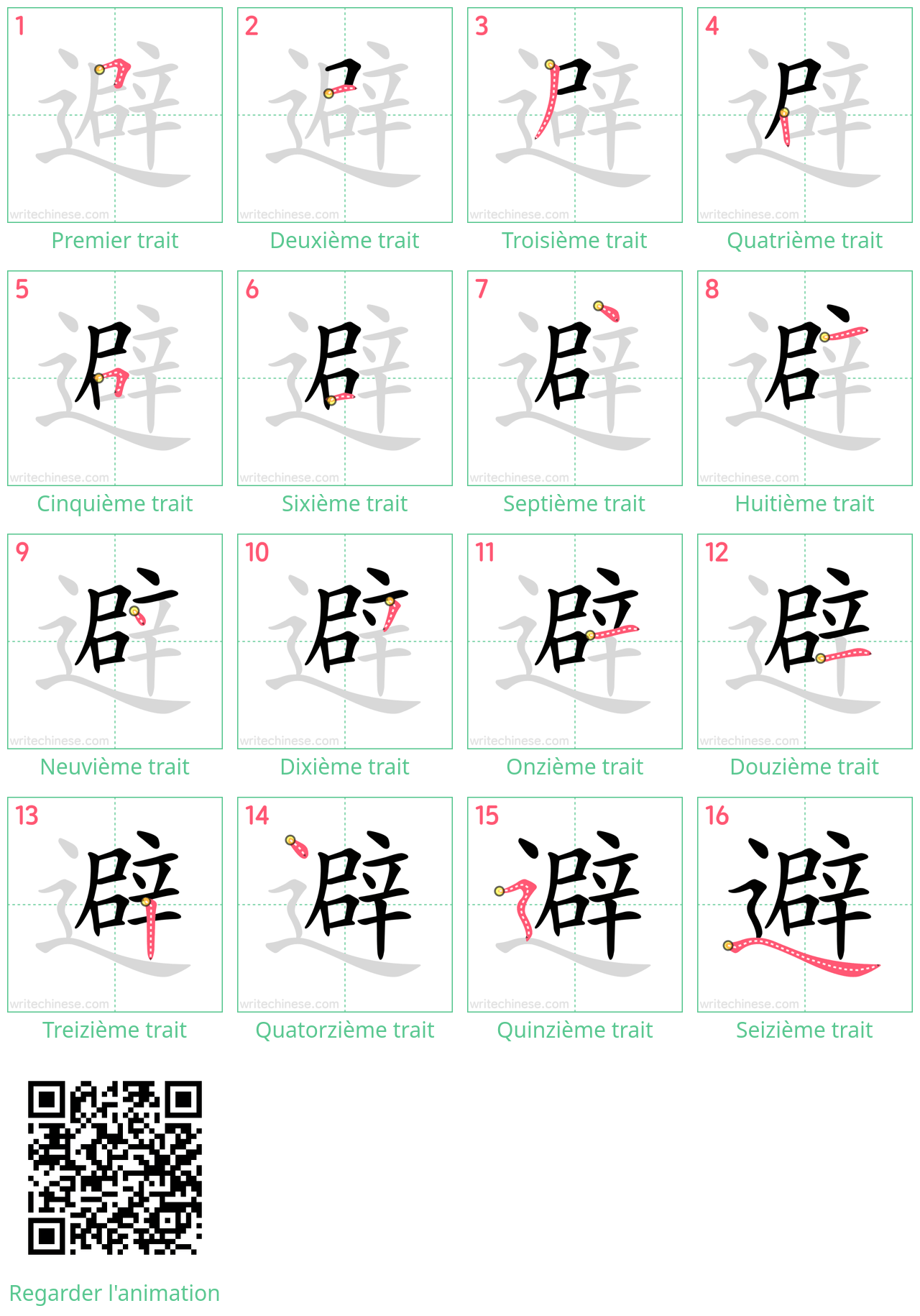 Apprenez à écrire le caractère chinois "避" en regardant l'animation de l'ordre des traits