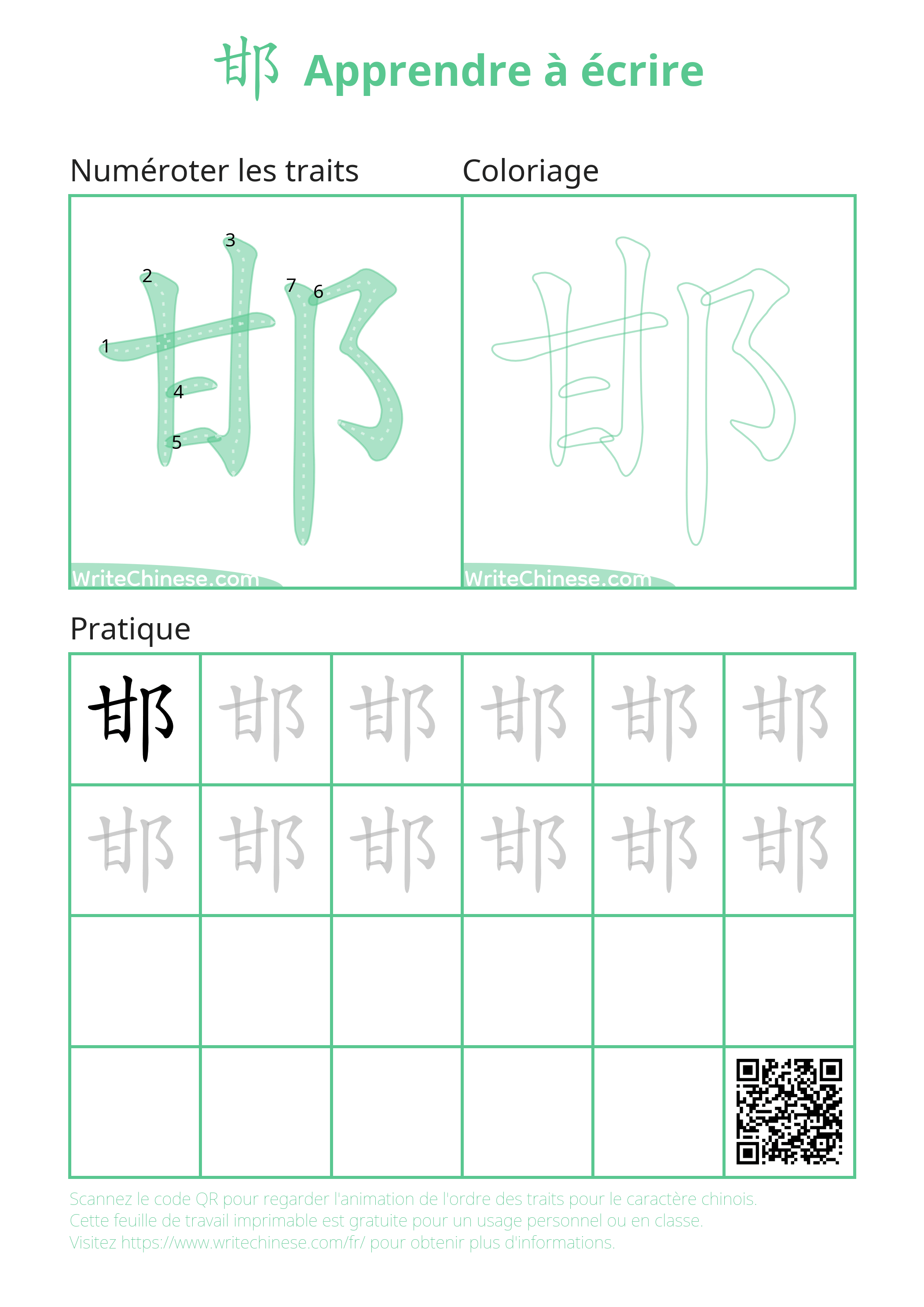 Feuilles d'exercices gratuites imprimables pour la pratique de l'écriture de 邯