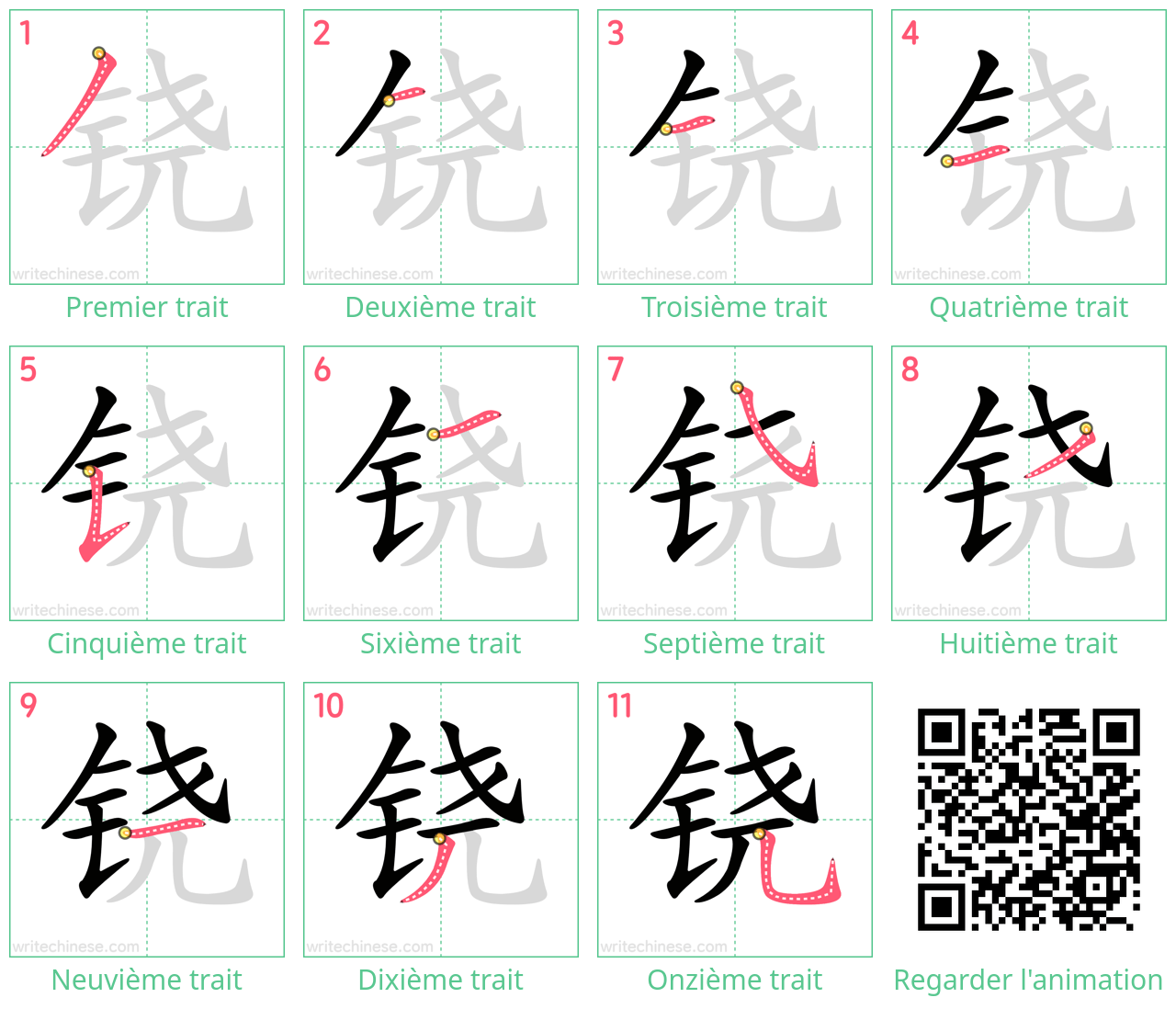 Feuille d'exercice imprimable pour la pratique de l'ordre des traits du caractère chinois 铙