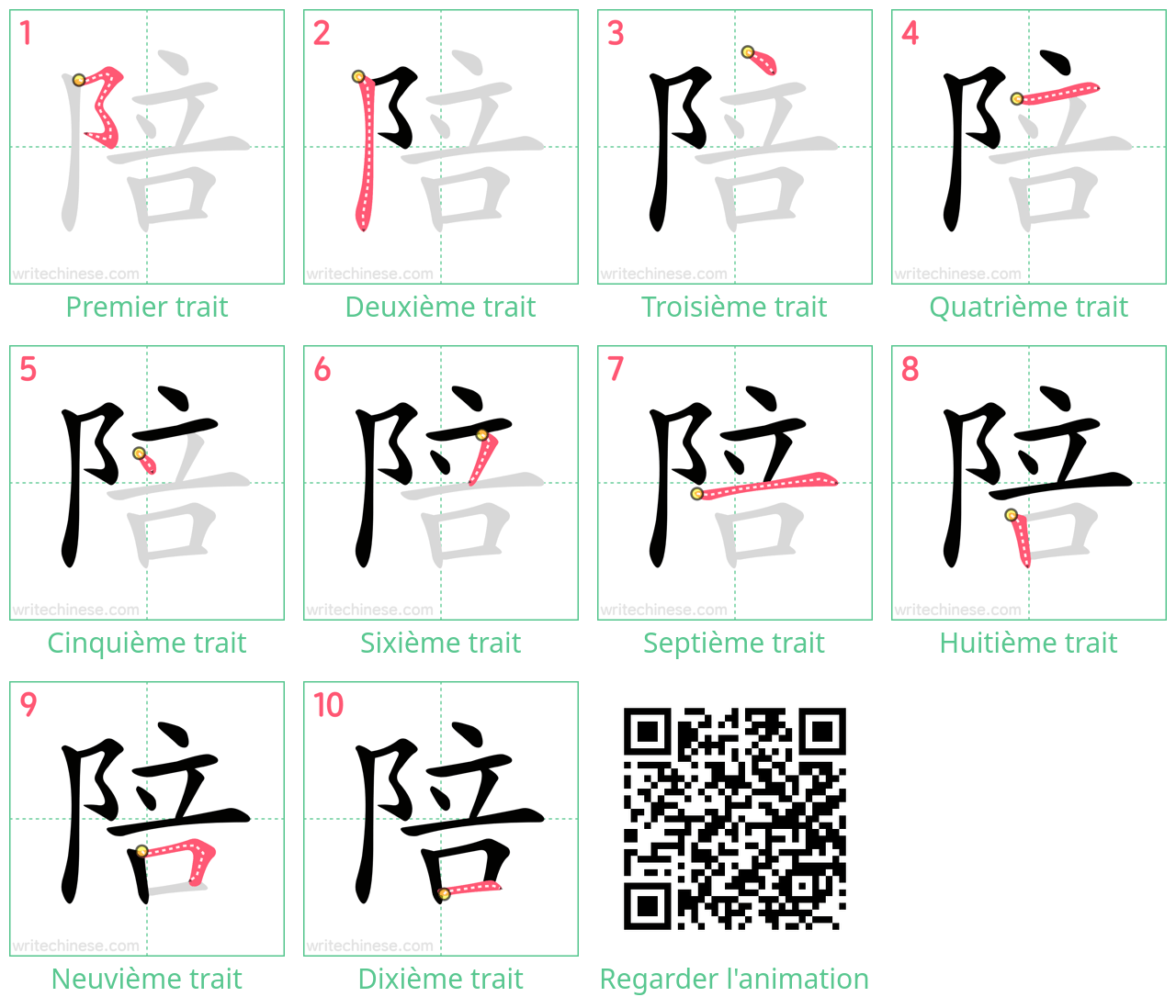 Animation de l'ordre des traits pour le caractère 陪