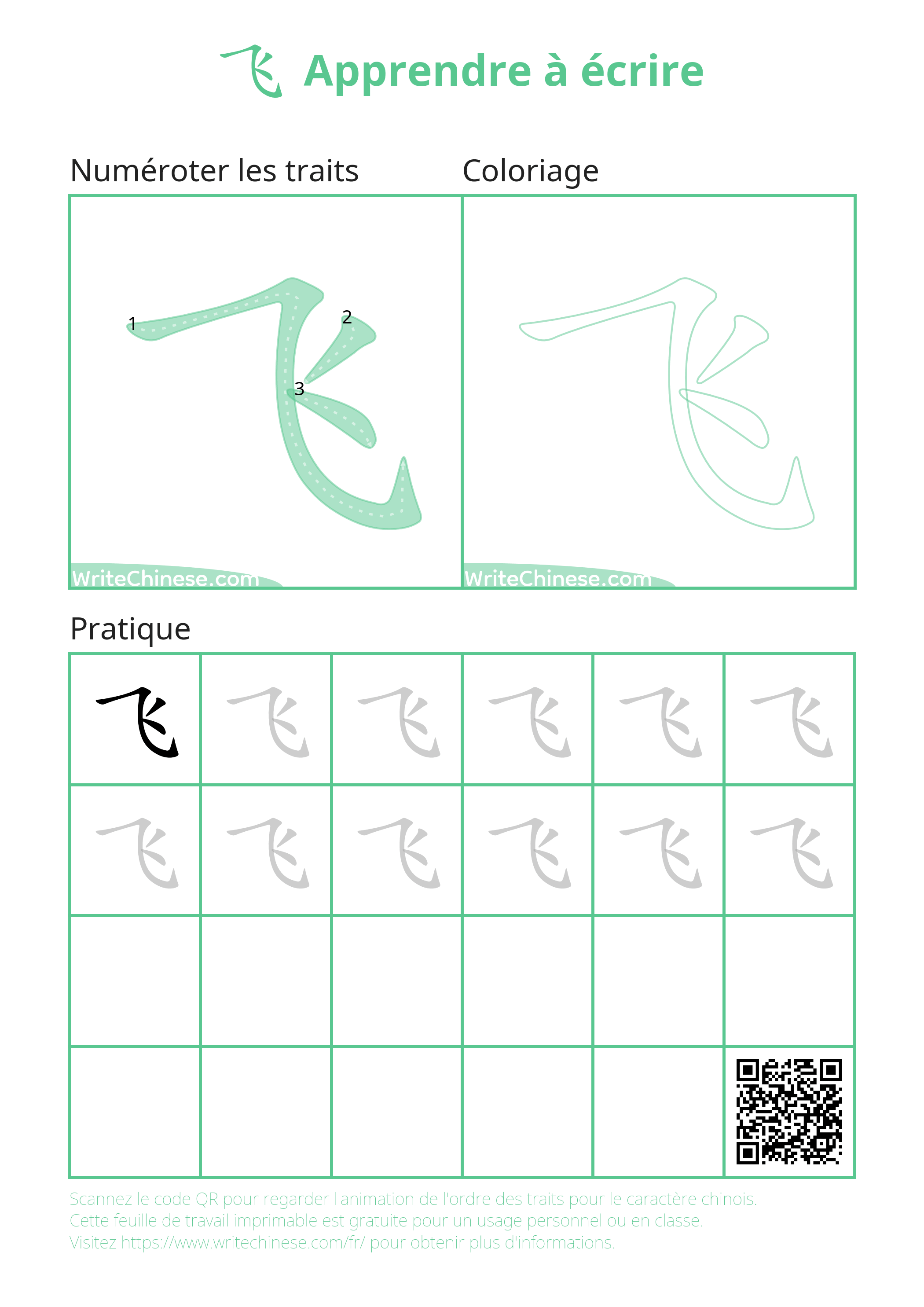 Feuilles d'exercices gratuites imprimables pour la pratique de l'écriture de 飞