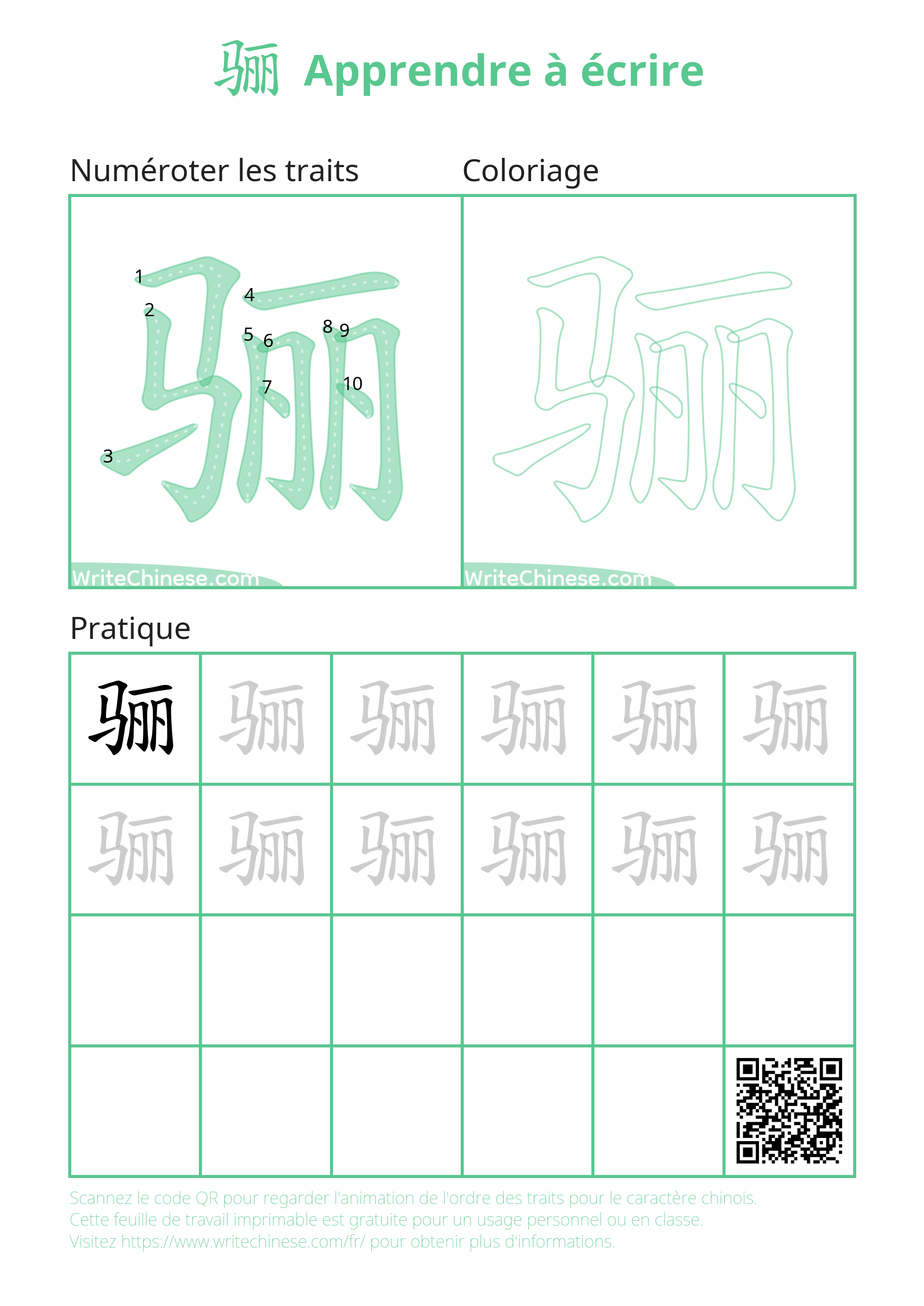 Feuilles d'exercices gratuites imprimables pour la pratique de l'écriture de 骊