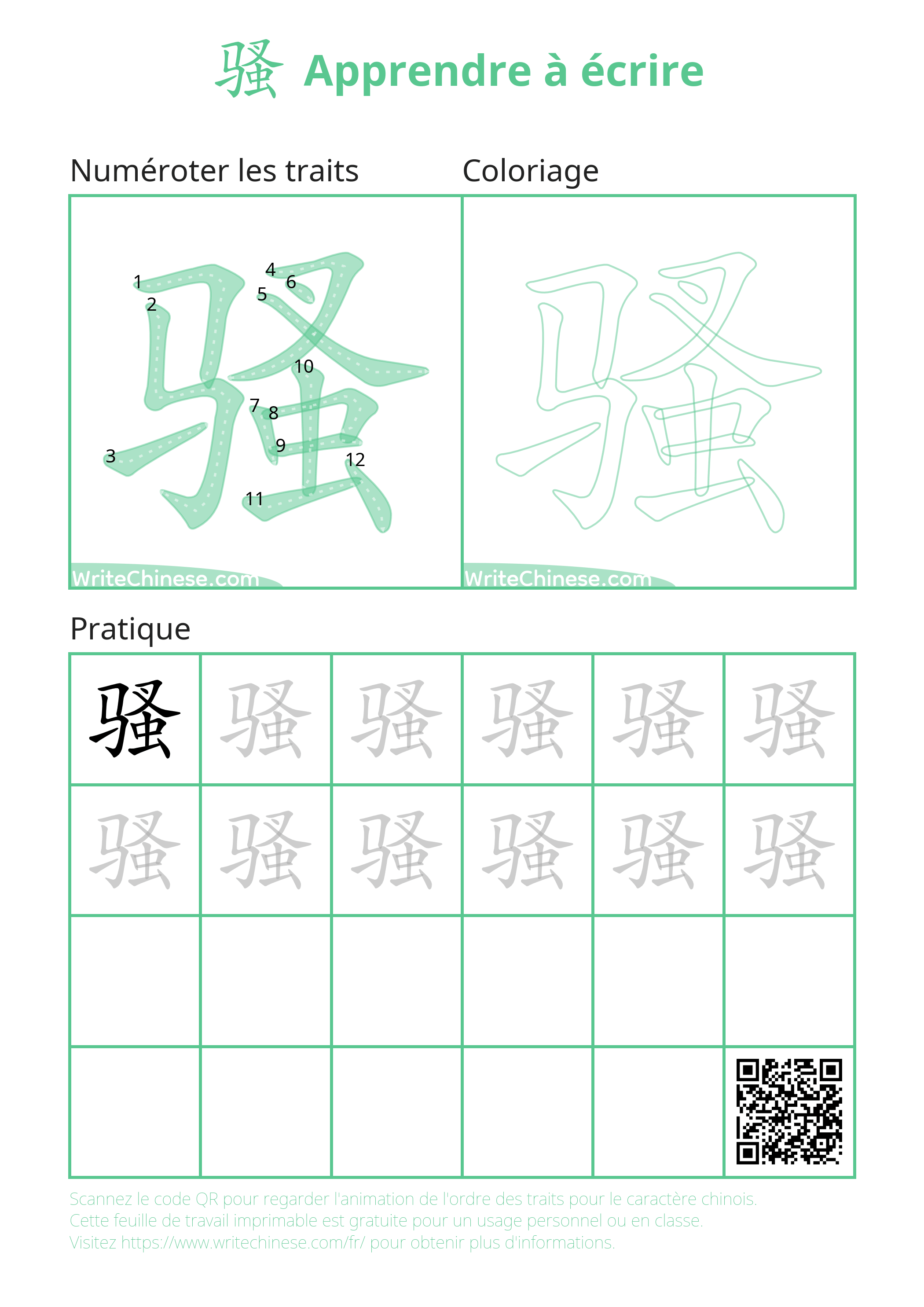 Feuille d'exercice imprimable pour la pratique de l'ordre des traits du caractère chinois 骚