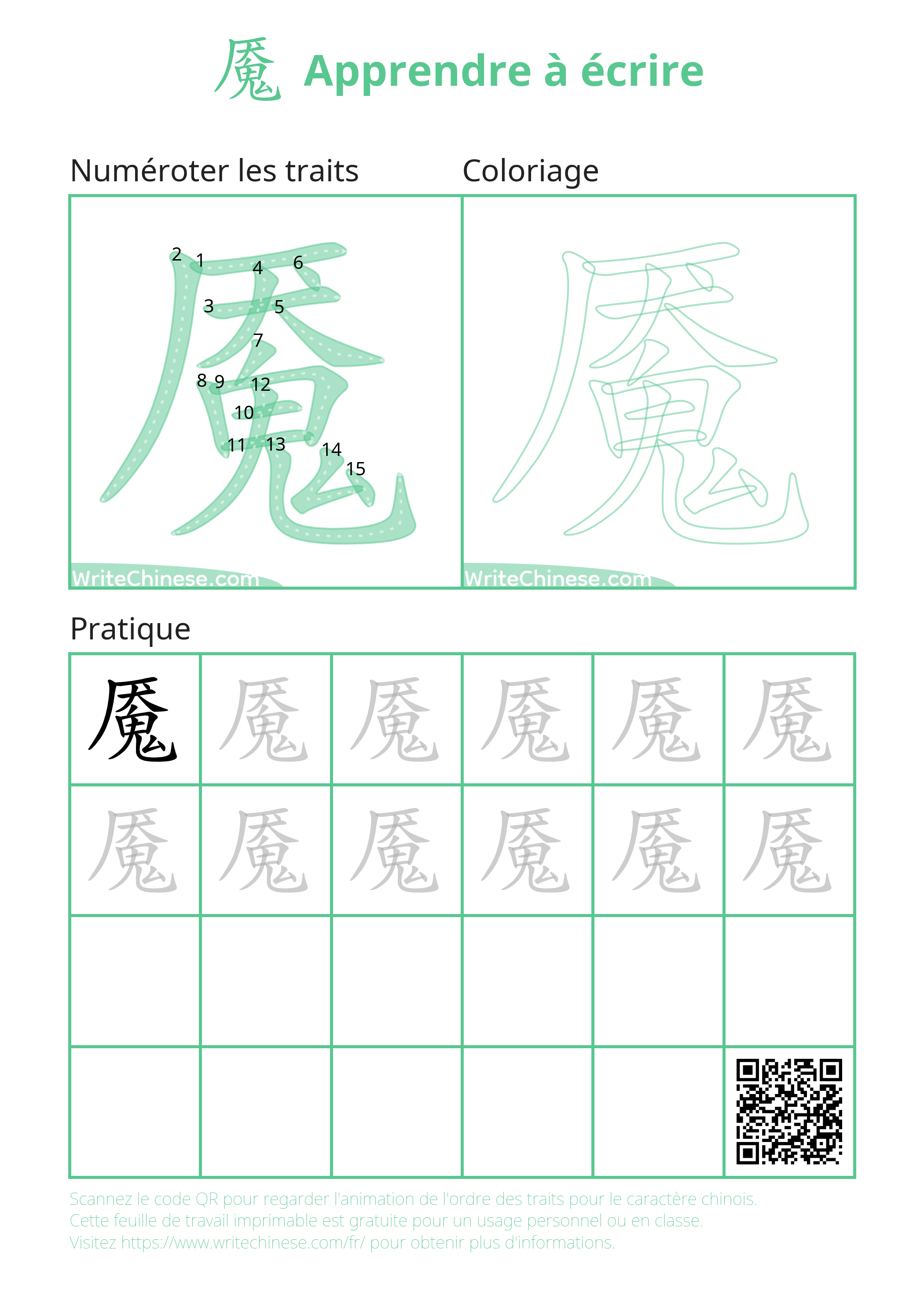 Feuilles d'exercices gratuites imprimables pour la pratique de l'écriture de 魇