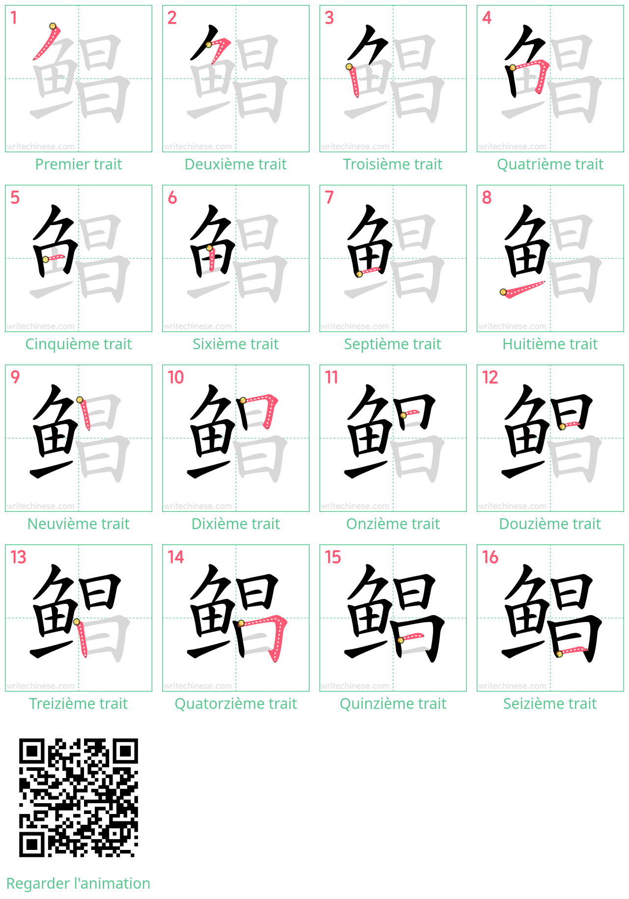 Apprenez à écrire le caractère chinois "鲳" en regardant l'animation de l'ordre des traits