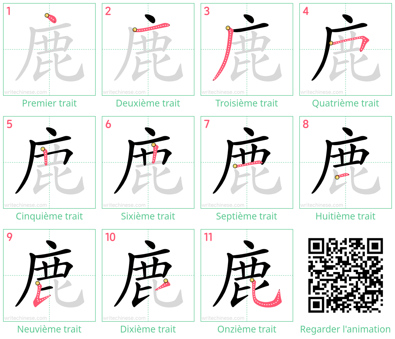 Apprenez à écrire le caractère chinois "鹿" en regardant l'animation de l'ordre des traits