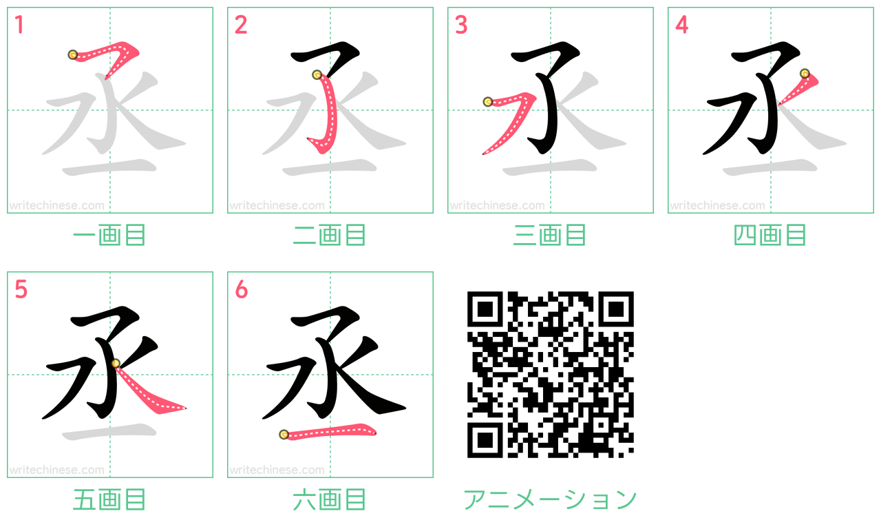 視覚的なステップバイステップの指示を使って、中国語の漢字「丞」の書き順を一画ずつマスターしましょう。