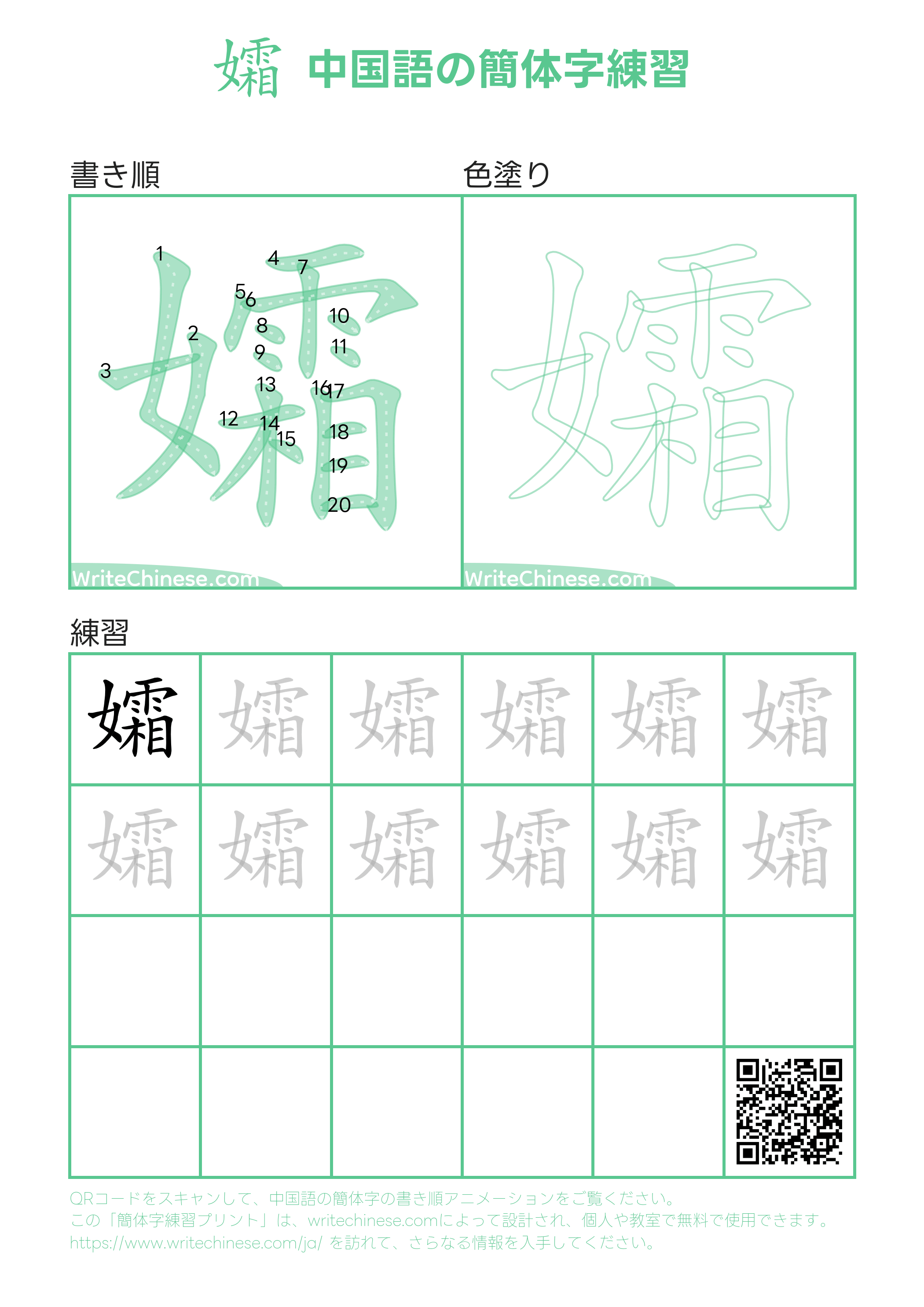 視覚的なステップバイステップの指示を使って、中国語の漢字「孀」の書き順を一画ずつマスターしましょう。