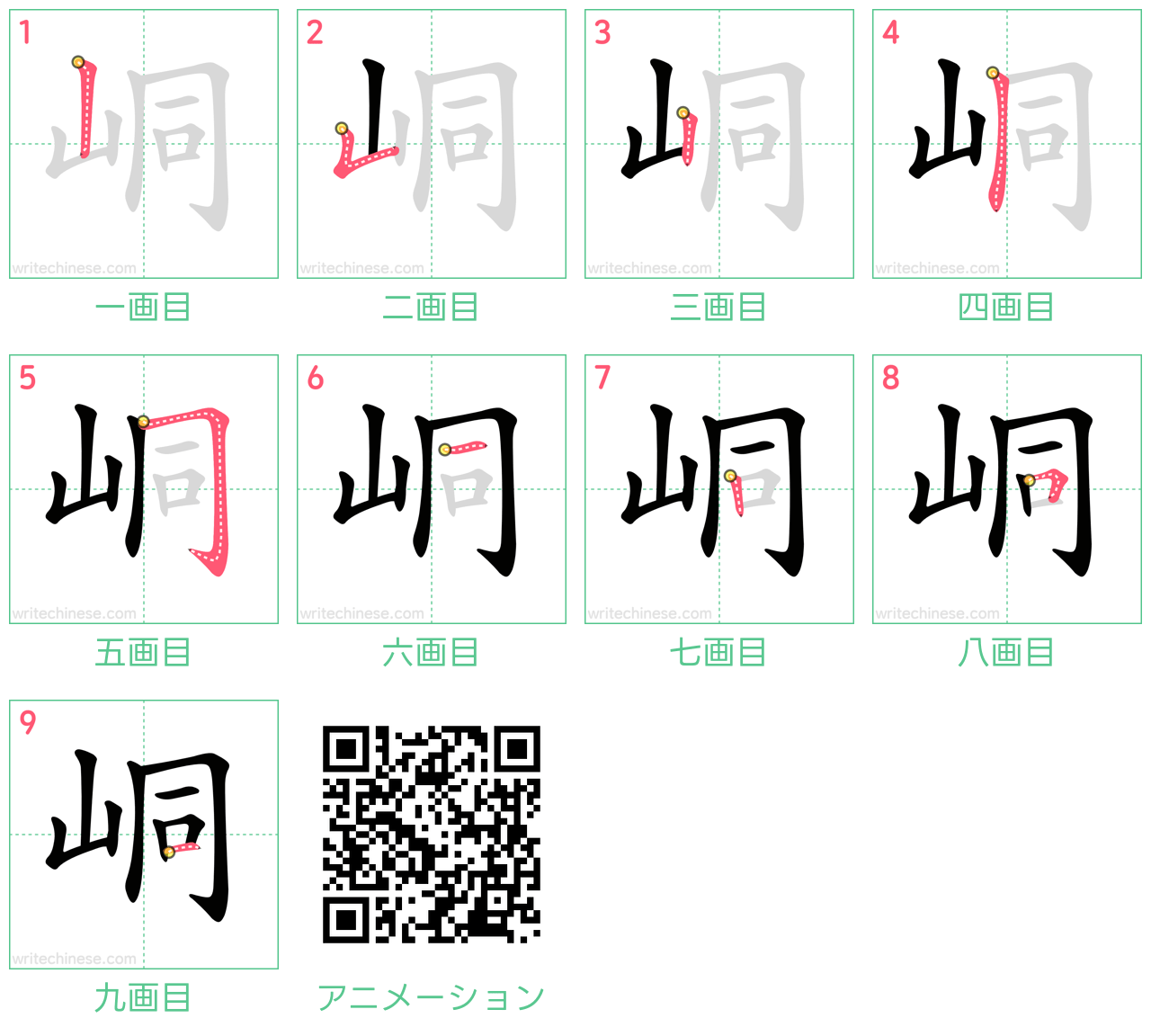 一画ずつ:峒の書き順