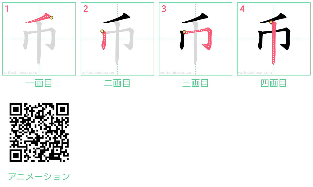 一画ずつ:币の書き順