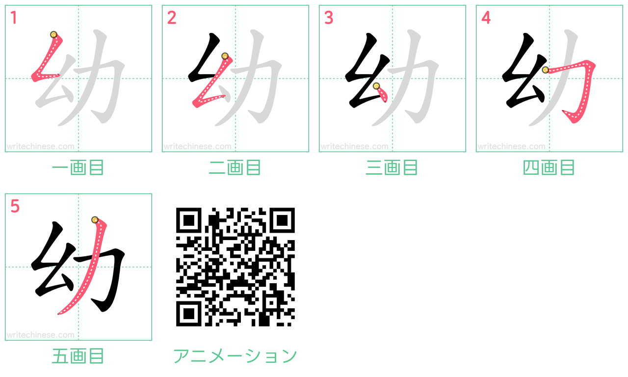 視覚的なステップバイステップの指示を使って、中国語の漢字「幼」の書き順を一画ずつマスターしましょう。