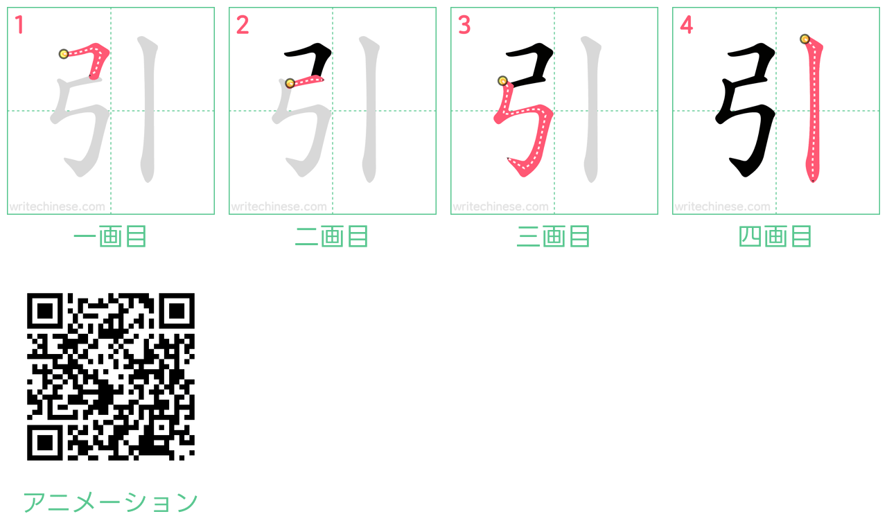 視覚的なステップバイステップの指示を使って、中国語の漢字「引」の書き順を一画ずつマスターしましょう。