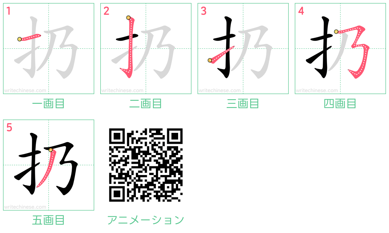 視覚的なステップバイステップの指示を使って、中国語の漢字「扔」の書き順を一画ずつマスターしましょう。