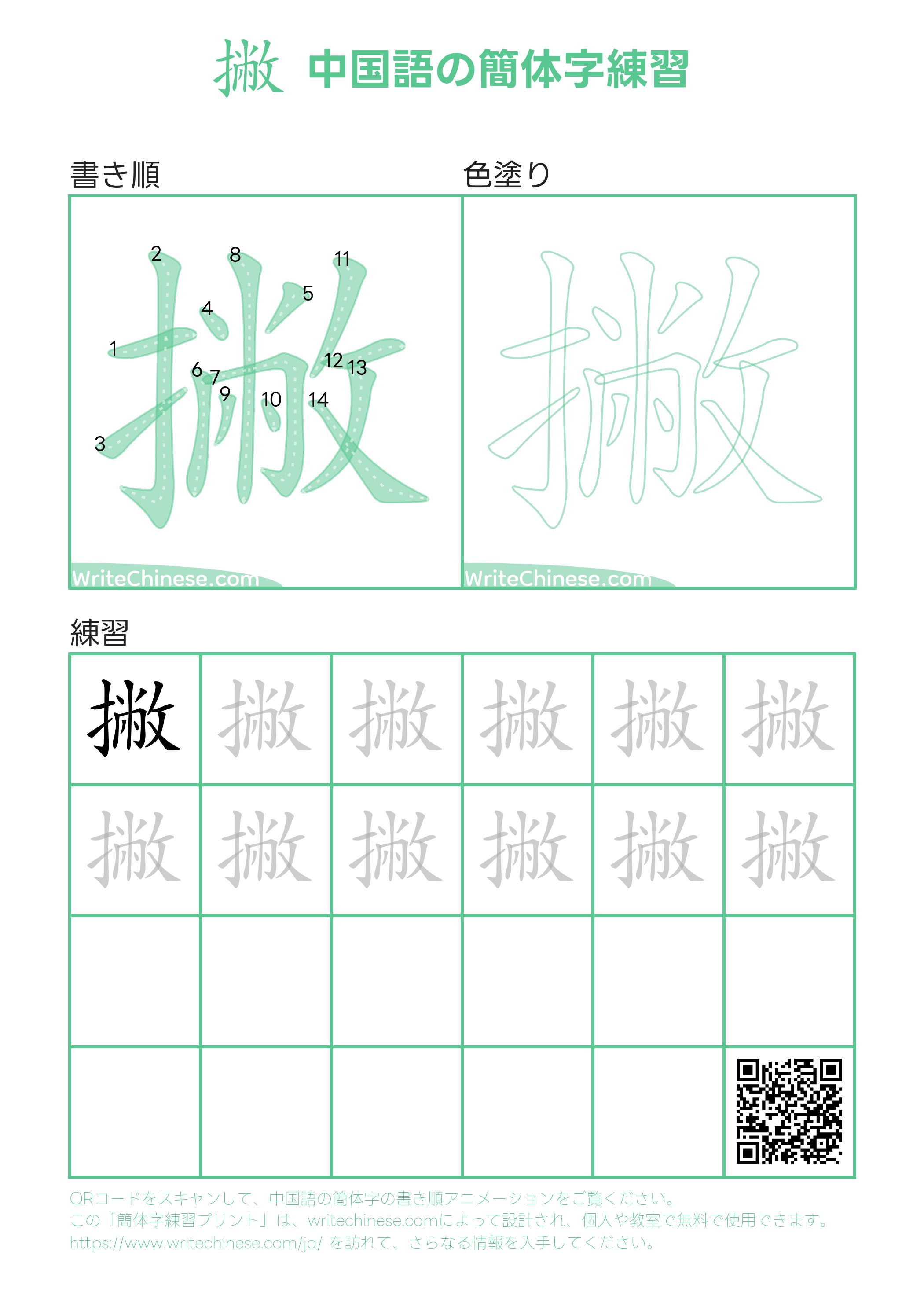 このウェブサイトの中国語の筆順の画像、アニメーション、動画、および印刷可能なワークシートは、個人や教室での使用に無料です。使用する際には、出典とウェブサイトのURLを明記してください。