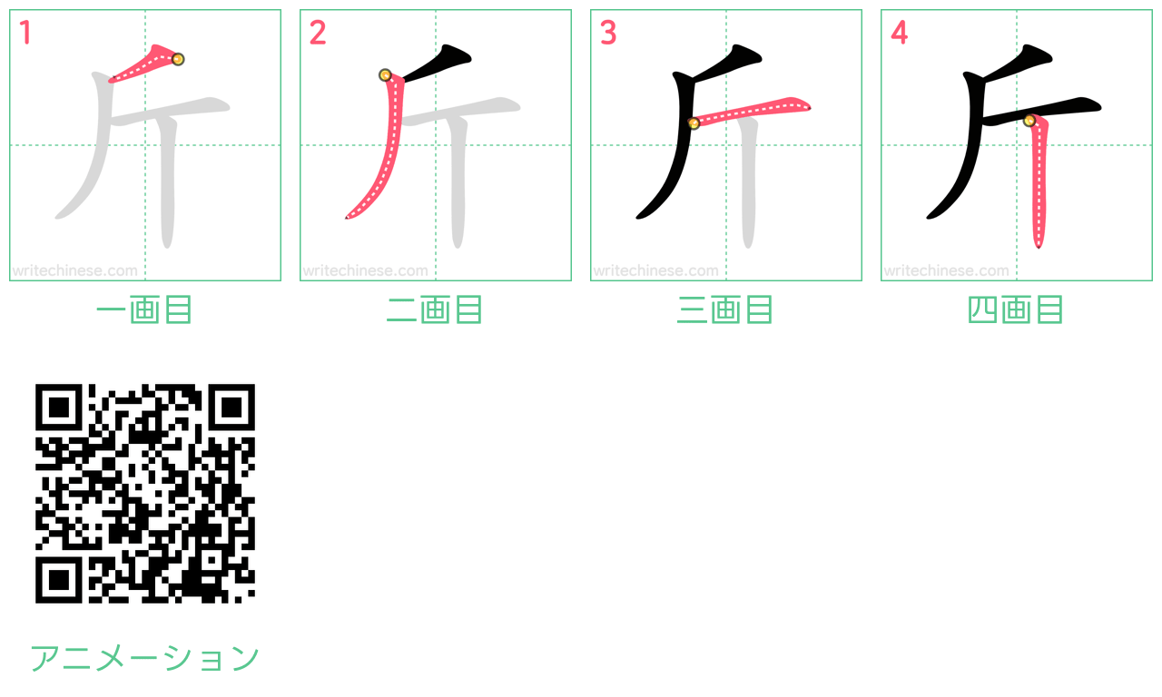 中国語の簡体字「斤」の筆順アニメーション