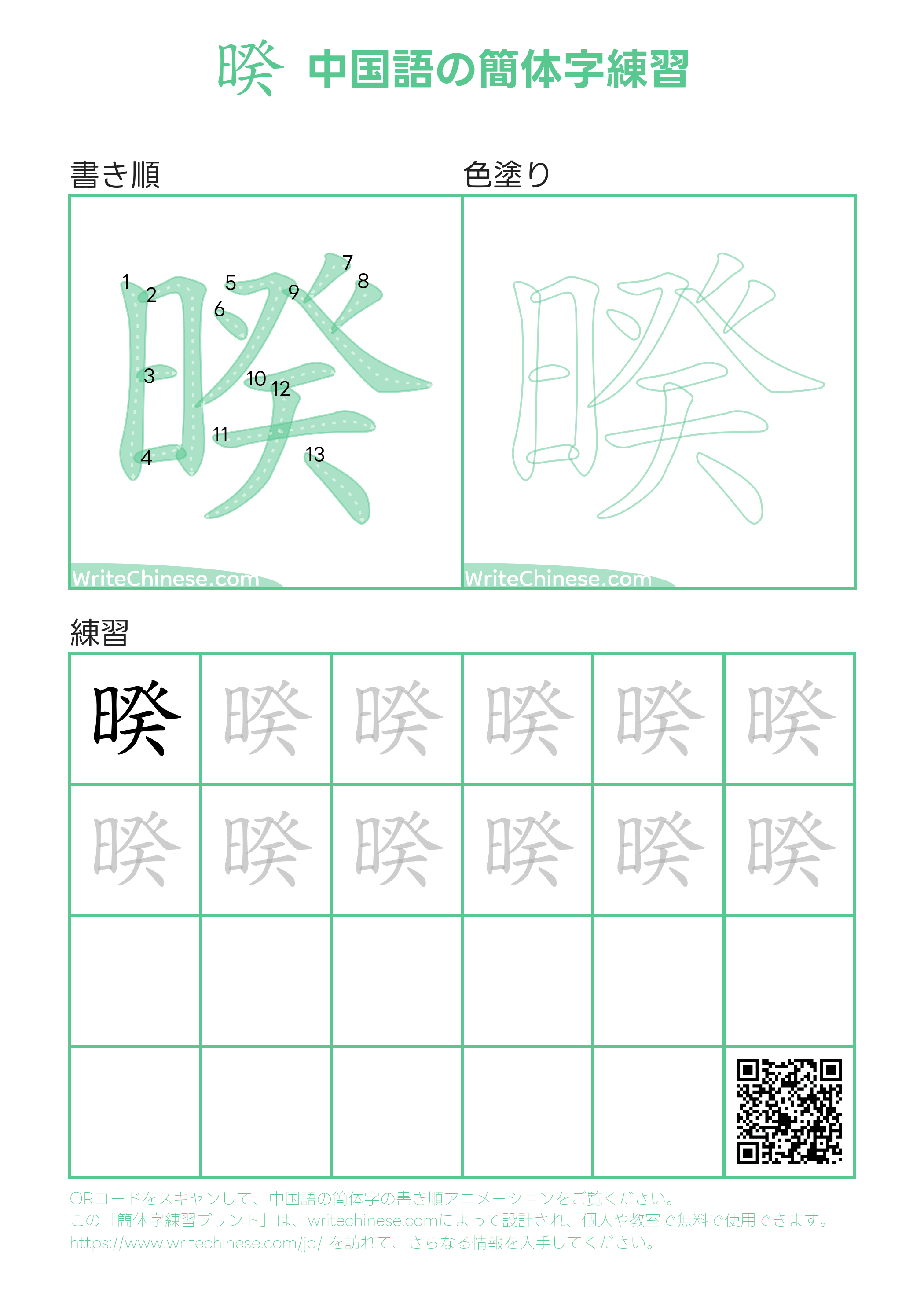 このウェブサイトの中国語の筆順の画像、アニメーション、動画、および印刷可能なワークシートは、個人や教室での使用に無料です。使用する際には、出典とウェブサイトのURLを明記してください。