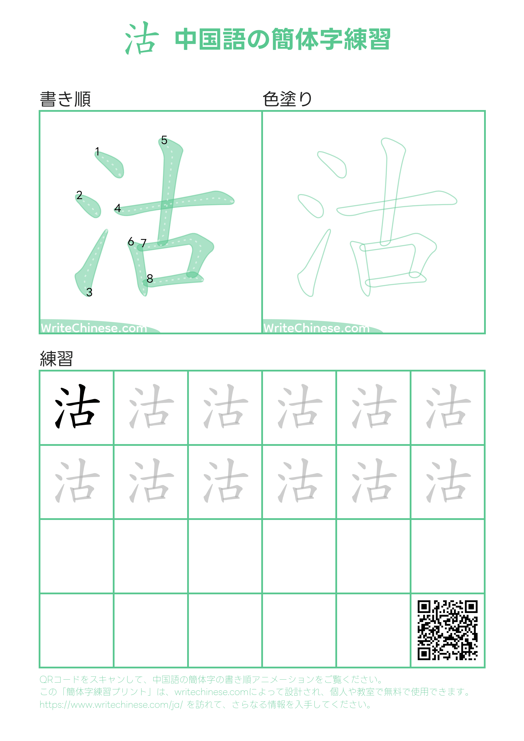 書道の先生によるビデオチュートリアルで、中国語「沽」の正しい書き方を学びましょう。書道の達人によるステップバイステップのガイドに従って、中国語「沽」を書きましょう。以下の印刷可能な手書き用のワークシートをダウンロードして、ペンと紙で一緒に書く練習をしましょう。