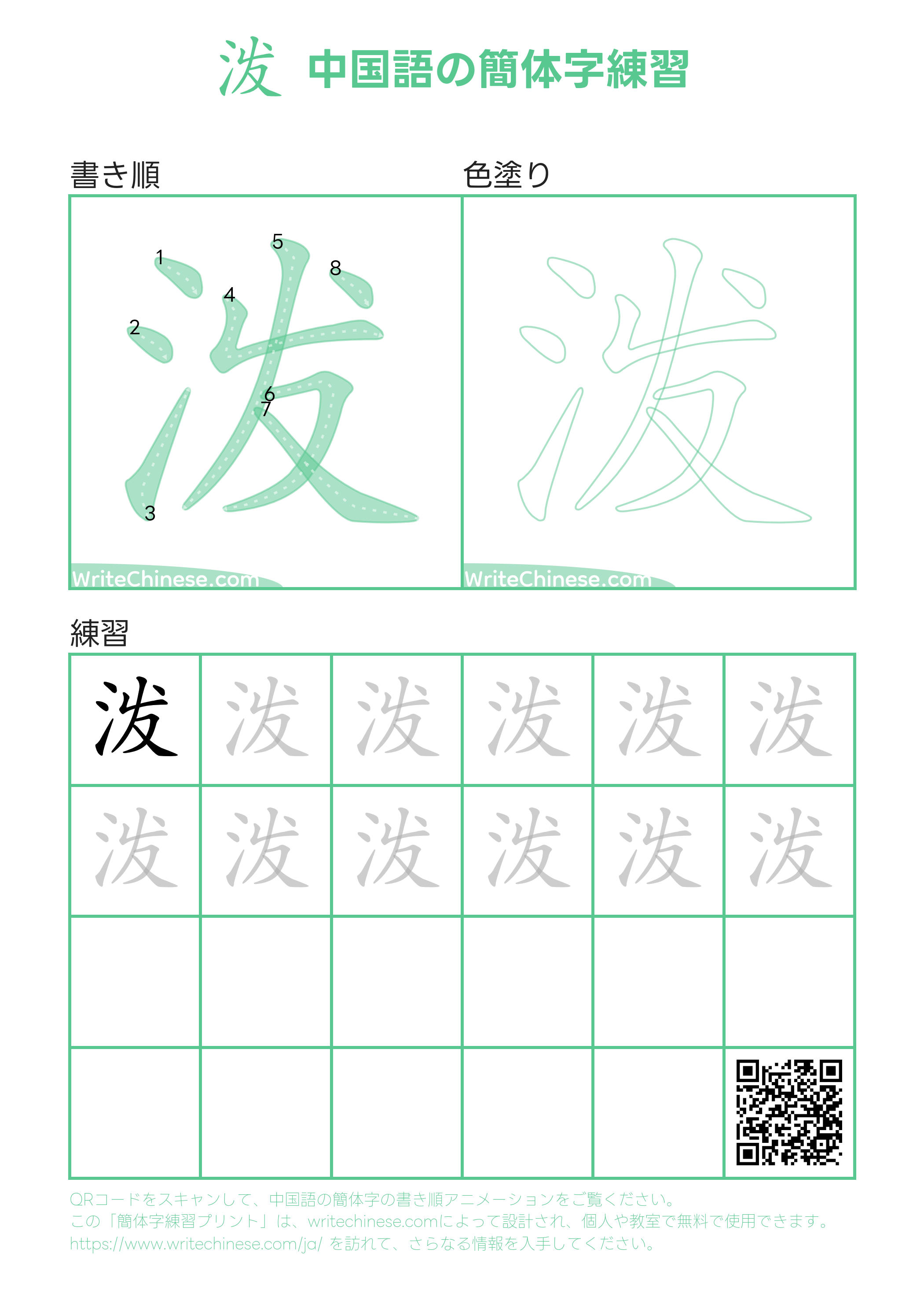 視覚的なステップバイステップの指示を使って、中国語の漢字「泼」の書き順を一画ずつマスターしましょう。