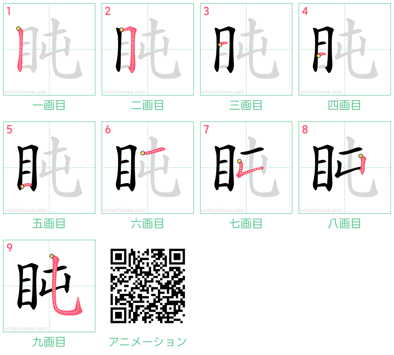 視覚的なステップバイステップの指示を使って、中国語の漢字「盹」の書き順を一画ずつマスターしましょう。