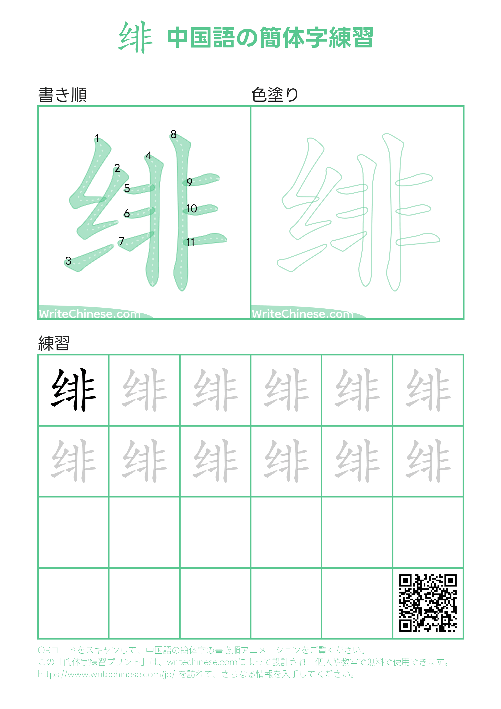 書道の先生によるビデオチュートリアルで、中国語「绯」の正しい書き方を学びましょう。書道の達人によるステップバイステップのガイドに従って、中国語「绯」を書きましょう。以下の印刷可能な手書き用のワークシートをダウンロードして、ペンと紙で一緒に書く練習をしましょう。